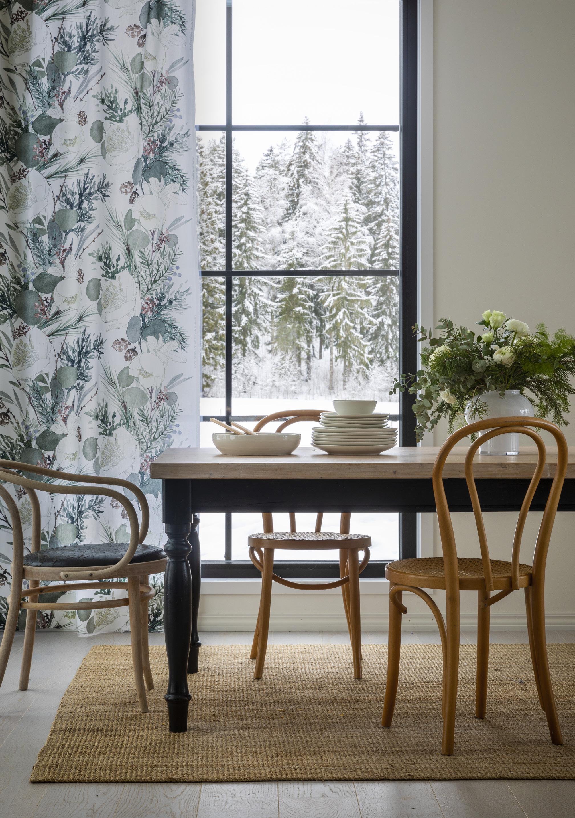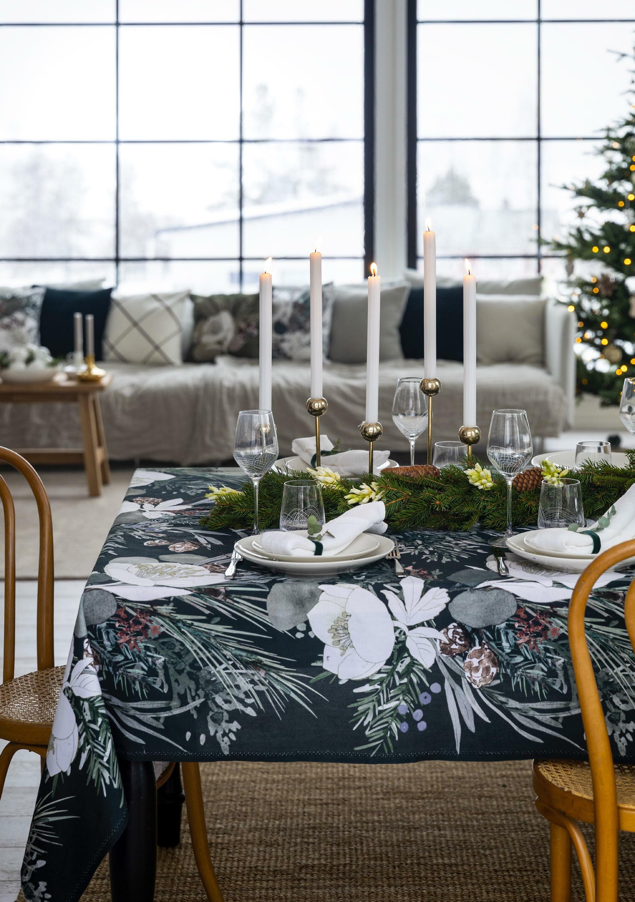 Fresh-cut winter greenery is one of the best ways get into the holiday spirit. Our new print, Sypressi (Cypress) by Minna Niskakangas brings the true essence of Christmas home with fragrant cypress needles, soft Christmas roses and just a touch of eucalyptus. Set a dramatic table with Sypressi in dark green and decorate the living room with pillows and other pieces white. Use both colours together and add gold or brass candleholders, twinkly lights and Christmas decorations and have a very merry Christmas.