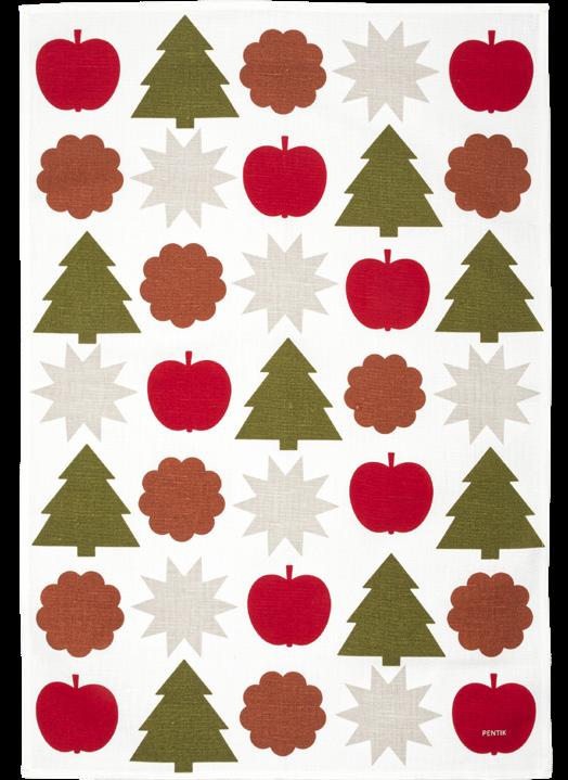 Joulumaa (Christmas land) brings some of the most recognizable Christmas shapes into one festive print. The green Christmas tree, brown gingerbread, shiny light star and rosy red apple all look like they were made with cookie-cutters. Joulumaa is the perfect print to add an instant Christmas vibe in the kitchen and beyond. Timeless yet modern, Joulumaa is a new Christmas classic.