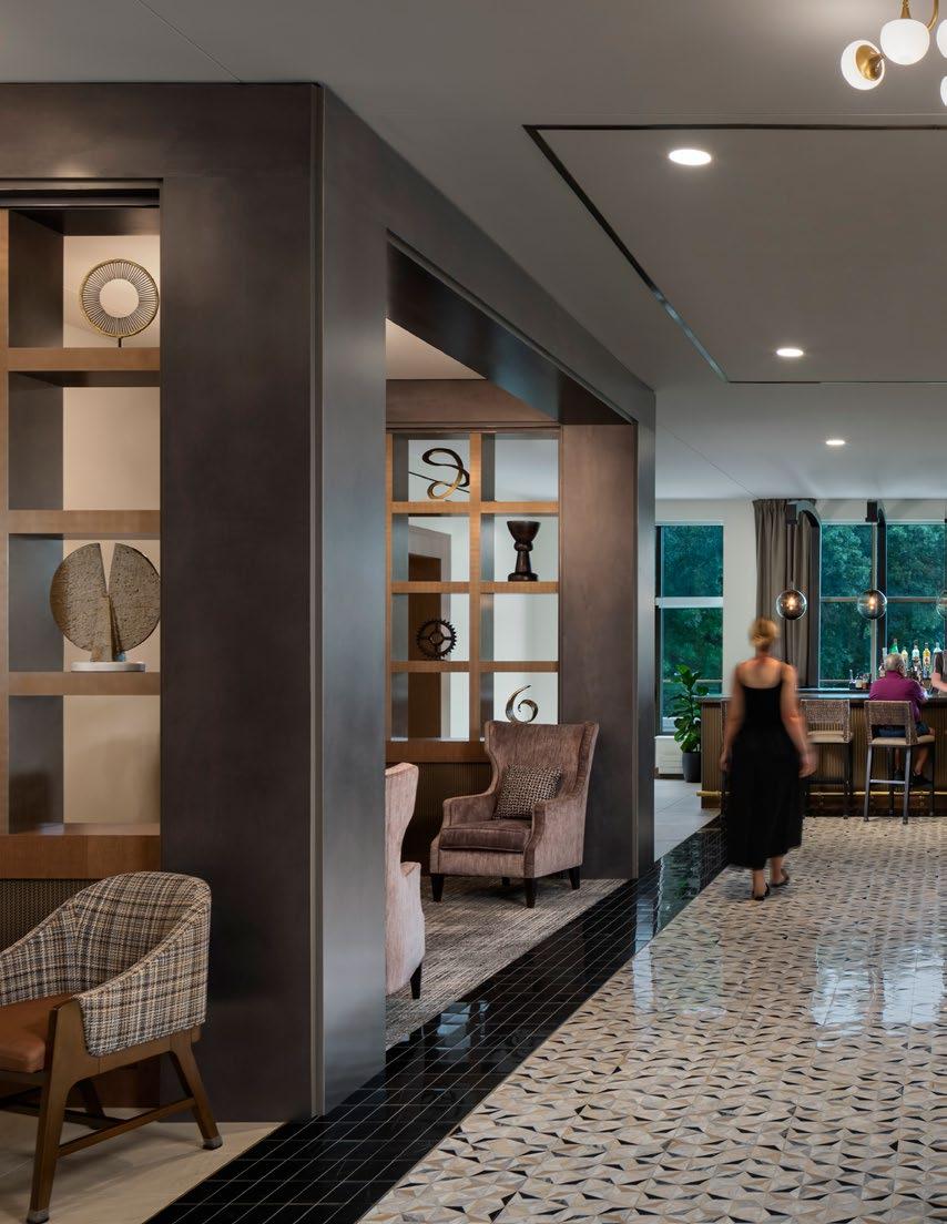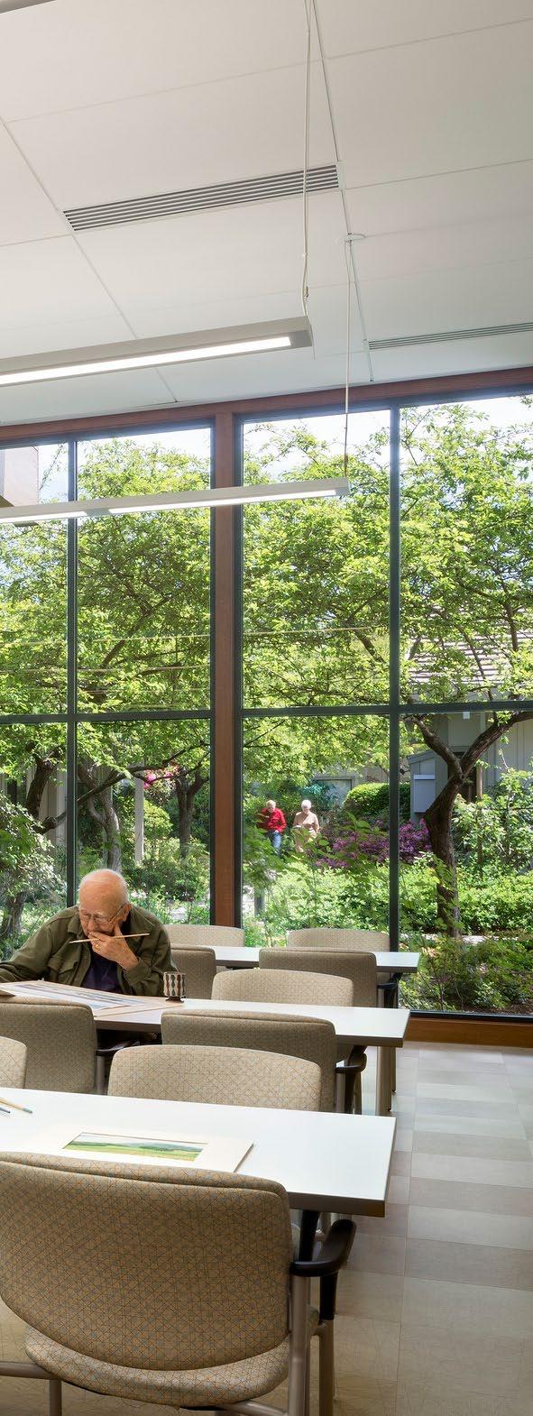 colors impact patterning and material selections is crucial to design for older adults. We are well versed in how color and contrast can impact pattern and the selection of appropriate fabrics, wall coverings, carpets, tile patterns, and other materials within the built environment. In the selection process, our team is sensitive to pattern movement due to complementary colors and their impact on balance and motion, colors that are perceived differently due to the aging eye and as a result look the same, and colors that can cause agitation in special-care environments.