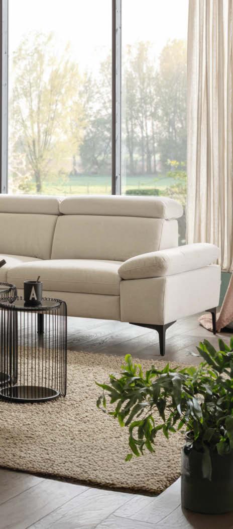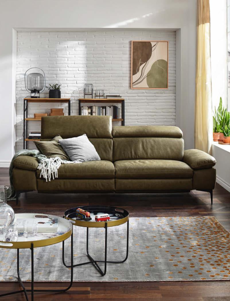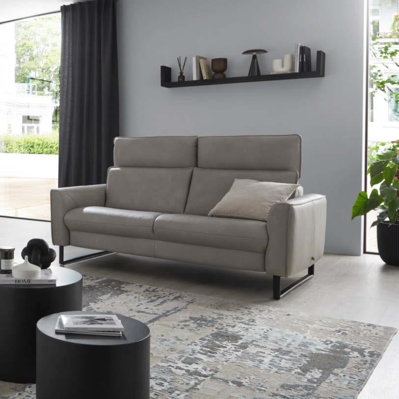 02 Global Wohnen Rafaela 2.0 Sofa in Leder Doppio pearl, Metallfuß schwarz, inkl. Kopfteil verstellbar, BHT ca. 208 × 86 × 107 cm, 2.498,-* Global Wohnen Rafaela 2.0 Sofa als Variante inkl. 1 Relaxfunktion rechts motorisch, 2.998,–*