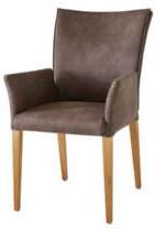 03 Global Wohnen Florea Armlehnstuhl in Stoff Linat dunkelbraun, 100 % Polyester, 4-Fuß-Gestell Eiche natur geölt, BHT ca. 57 × 93 × 67 cm, je 398,–*