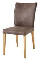 02 Global Wohnen Florea Stuhl in Stoff Linat dunkelbraun, 100 % Polyester, 4-Fuß-Gestell Eiche natur geölt, BHT ca. 47 × 93 × 64 cm, je 329,–*