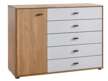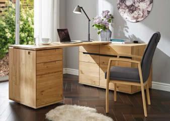 02 Global Wohnen Amora Sideboard mit integriertem Schreibtisch in Wildeiche massiv, bianco geölt, Griffeisten schiefergrau, bestehend aus: Sideboard, inkl. 3 Holztüren, Funktion: Winkel-Schreibtisch mit Container, inkl. 1 Schubkasten und 1 Holztür, BHT ca. 152 × 76 × 60 / 198 cm, 3.798,–*
