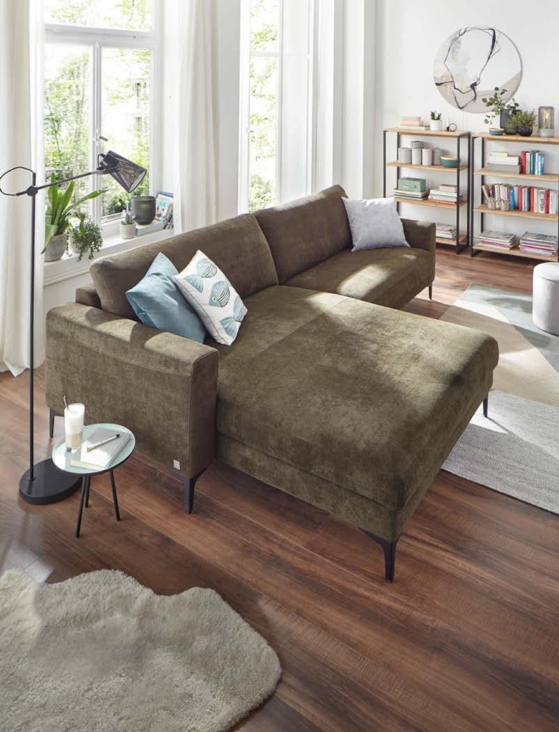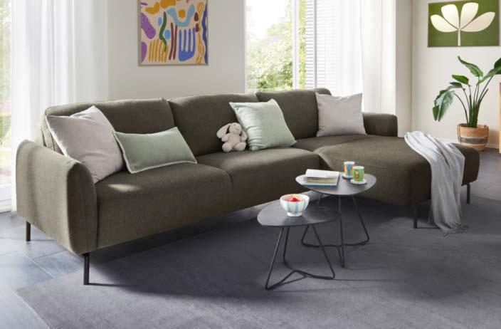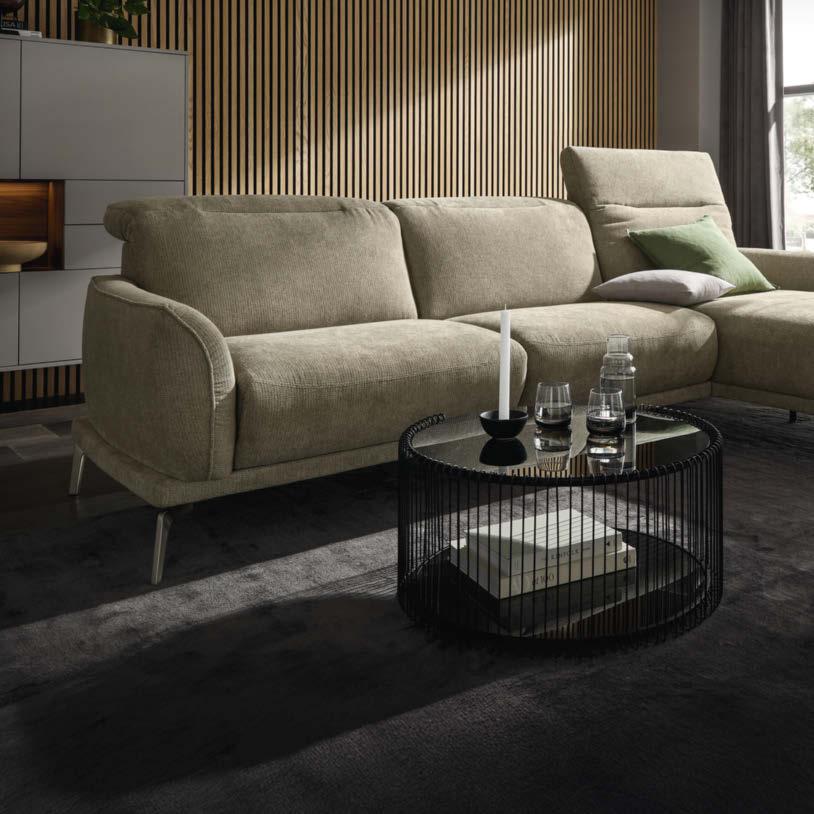01 Global Wohnen Rafaela 2.0 Ecksofa in Stoff Loft natur, 100 % Polyester, Metallfuß schwarz, inkl. Kopfteilverstellungen, BHT ca. 306 × 84 × 184 cm, 2.998,-* Global Wohnen Rafaela 2.0 Ecksofa als Variante inkl. Sitzvorzug und Relaxfunktion im Longchair jeweils elektrisch verstellbar, 4.198,-*