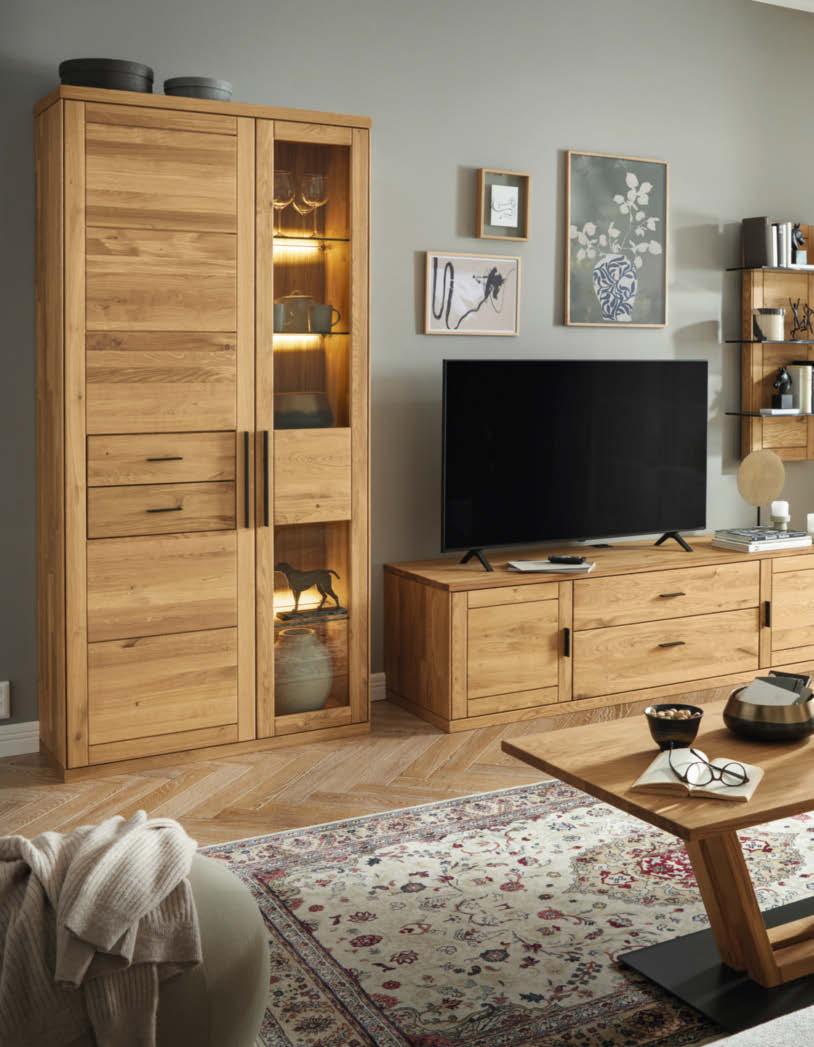 Global Wohnen Amora verbindet zeitloses Design mit der Wärme von Massivholz. Jedes Möbelstück ist ein Unikat – robust, langlebig und natürlich schön. Hier ergänzen praktische Funktionen durchdachtes Zubehör.