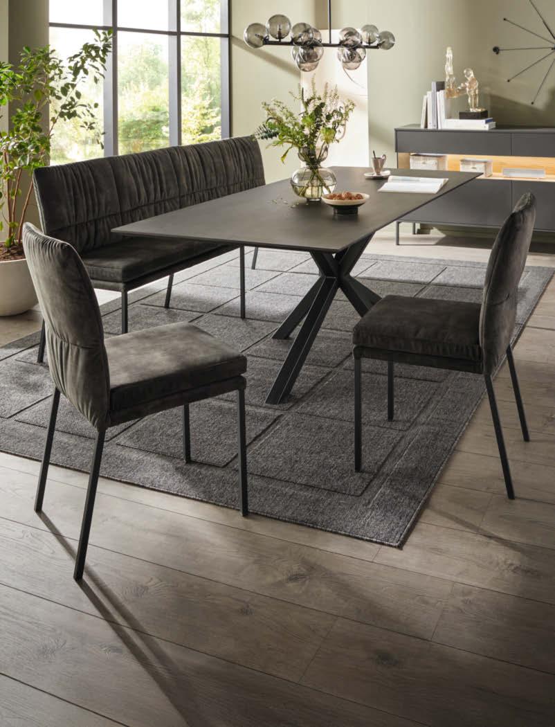 Ob Stuhl oder Bank, mit oder ohne Armlehne, in Leder oder Stoff, auf Kufe oder mit Holzgestell – Global Wohnen Florea lässt sich vielseitig kombinieren. Du hast freie Wahl, denn am Ende zählt, dass du gut sitzt.