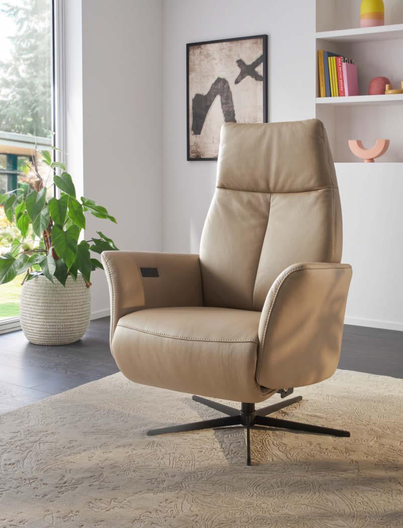 Mit den optionalen elektrischen Funktionen kannst du dich entspannt zurücklehnen: Relaxfunktion im Einzelsitz oder Sitzauszug im Doppelsitz, Liegefunktion im Longchair