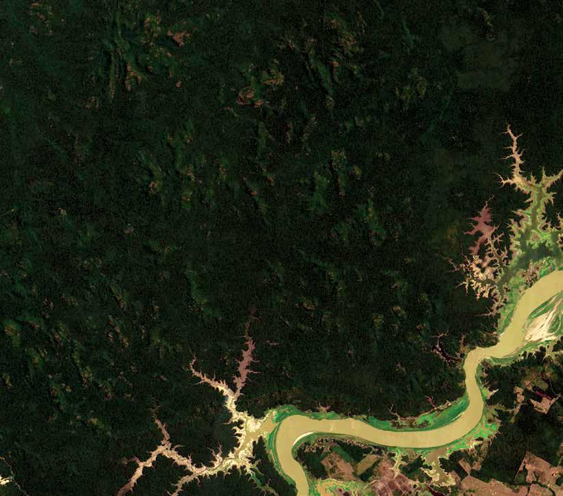 Portada Imágenes del satélite Sentinel 2 tomadas en julio del año 2022 muestran desmontes en dos áreas del estado brasileño de Rondônia: en una extensión situada entre el río Madeira y su afluente Jamari (tapa), y en la zona de Cujubim (contratapa). Los polígonos de color tierra son áreas deforestadas, y las pequeñas manchas blancas representan nubes.