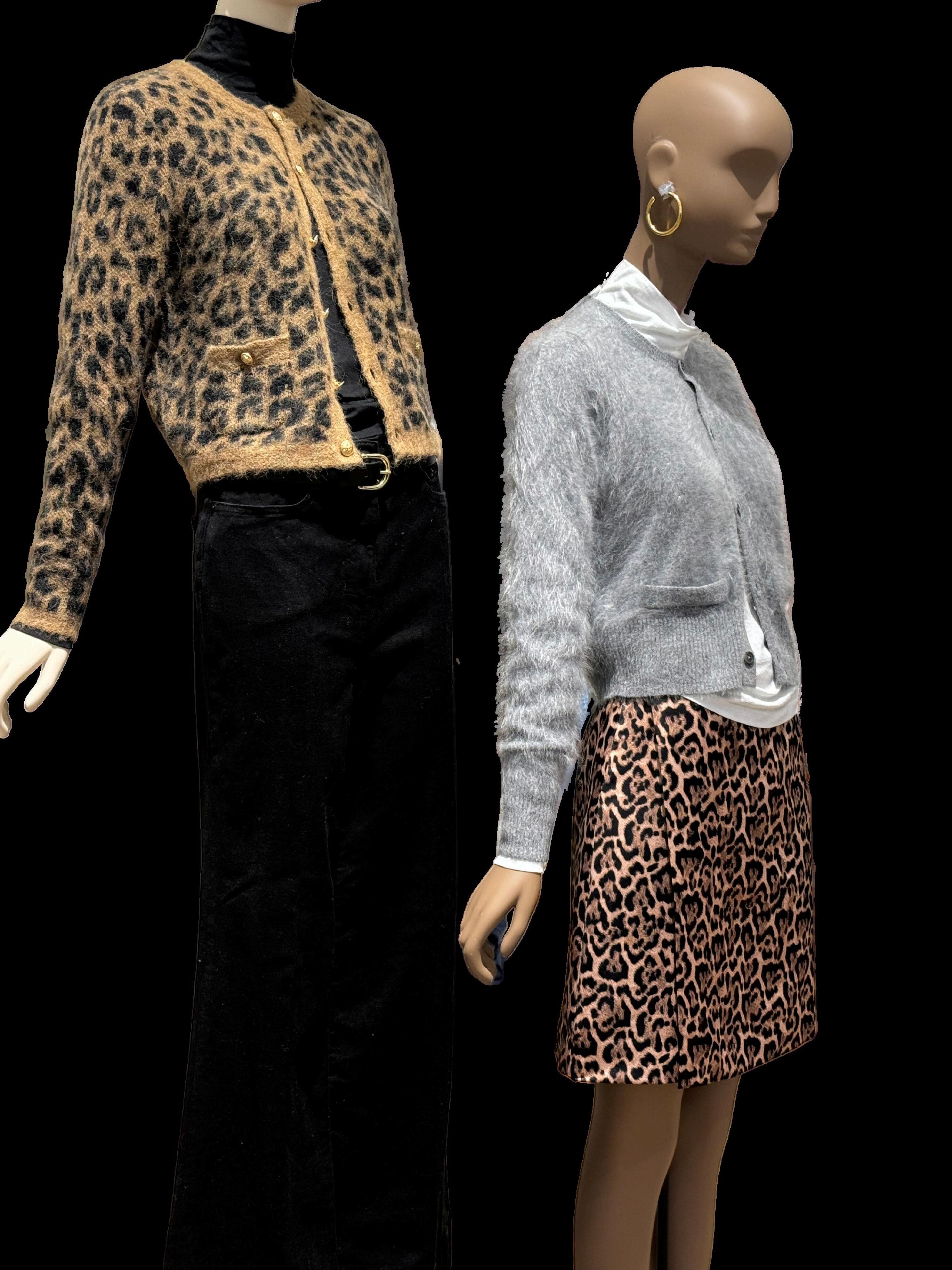 Reporting fall/winter 2024 trends that have been pulled from mass market and luxury designer fashion brands. The selection for this fall/winter aligns with desires for personal expression. The color palette includes star colors cherry bomb, little baby pink and night navy blue, together with the classic fall neutrals grey and camel. Leopard print took over high-end brands (Dolce & Gabbana) and was adopted by the fast fashion brands to the point of oversaturation. Plaid is always a staple print for fall, this season designer interpretation gingham is having a moment. Across the high street brands knitwear is a key item in fall collections. This fall most knits were constructed with a horizontal stripe or cable knit. Luxury brands featured more novelty knits, specifically with distressed or embellished details. Leather and denim are is embellished with silver studs. To keep warm in the colder months, pattern outerwear is paired with faux fur accessories.