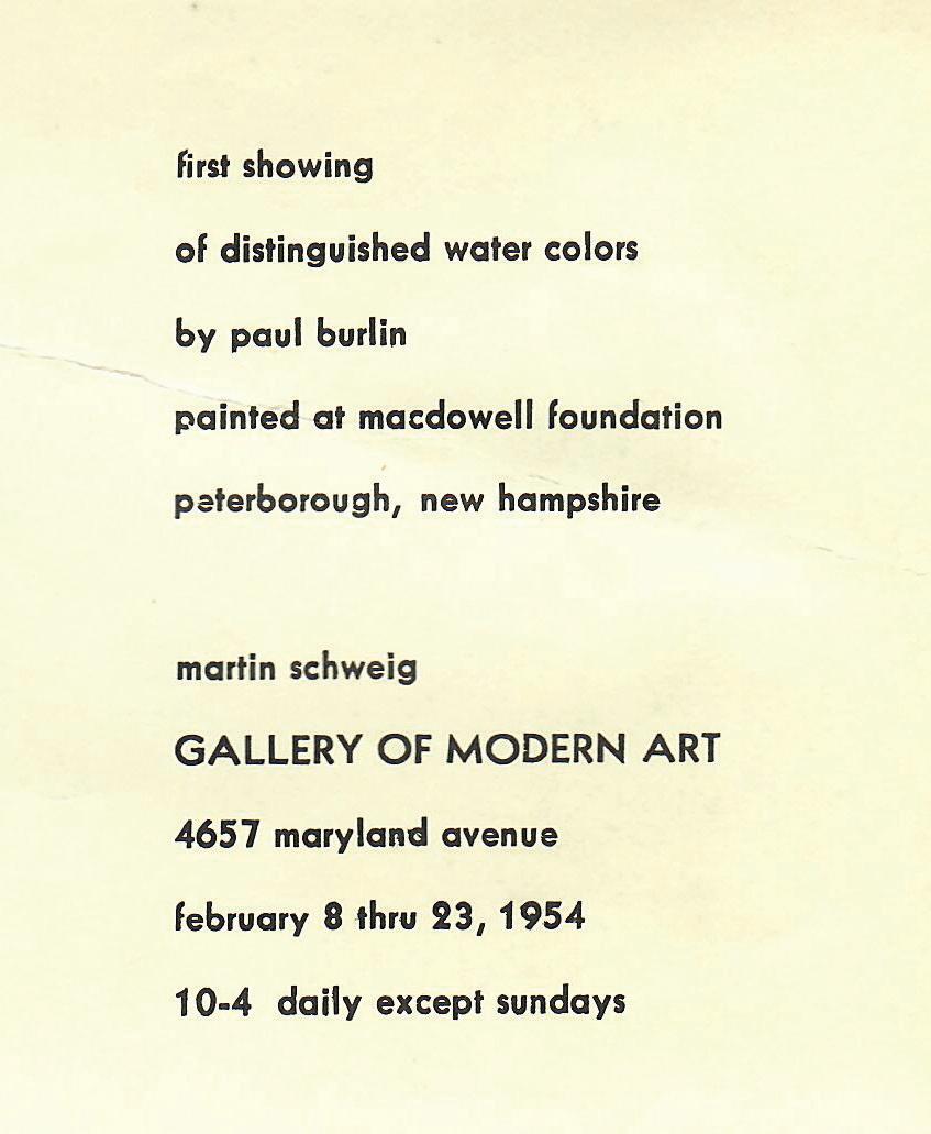 American Federation of the Arts, New York, “Paul Burlin Retrospective”, January 1962-February 1963. Curated by Irving Sandler, the exhibition traveled to museums around the country, including the Whitney Museum of American Art and the Philadelphia Art Alliance. (label verso)