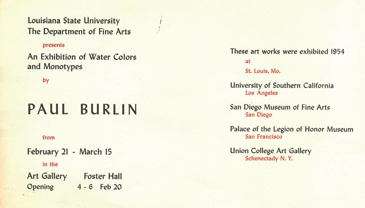 CHEW, PAUL A. : PAUL BURLIN. PERSPECTIVES (WASHINGTON UNIVERSITY, ST. LOUIS) SPRING 1954.