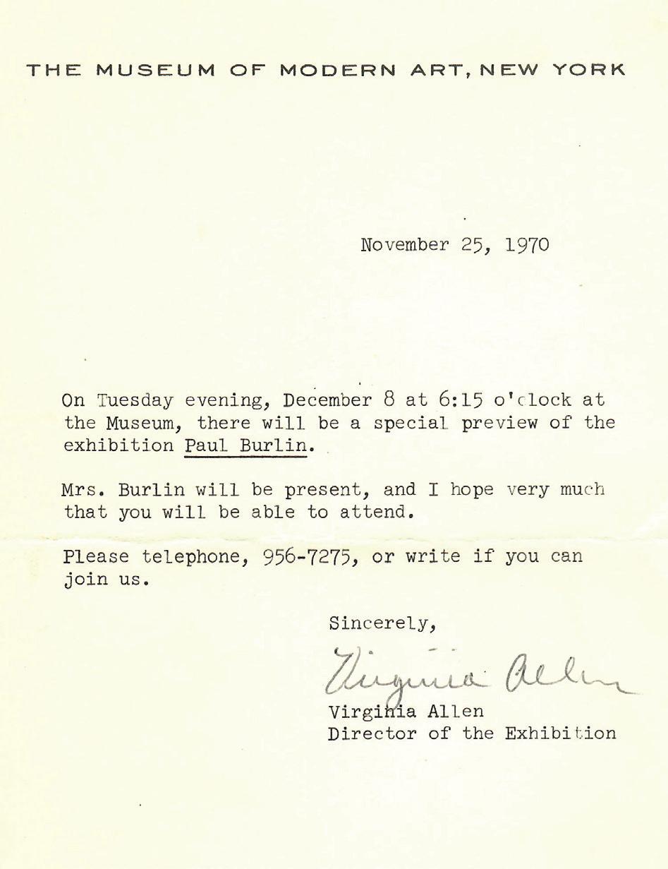 The Museum of Modern Art first showed the work of Paul Burlin in 1930 - in the ninth exhibition of its young life. We are pleased and honored to present this small tribute on the fortieth anniversary of our association.