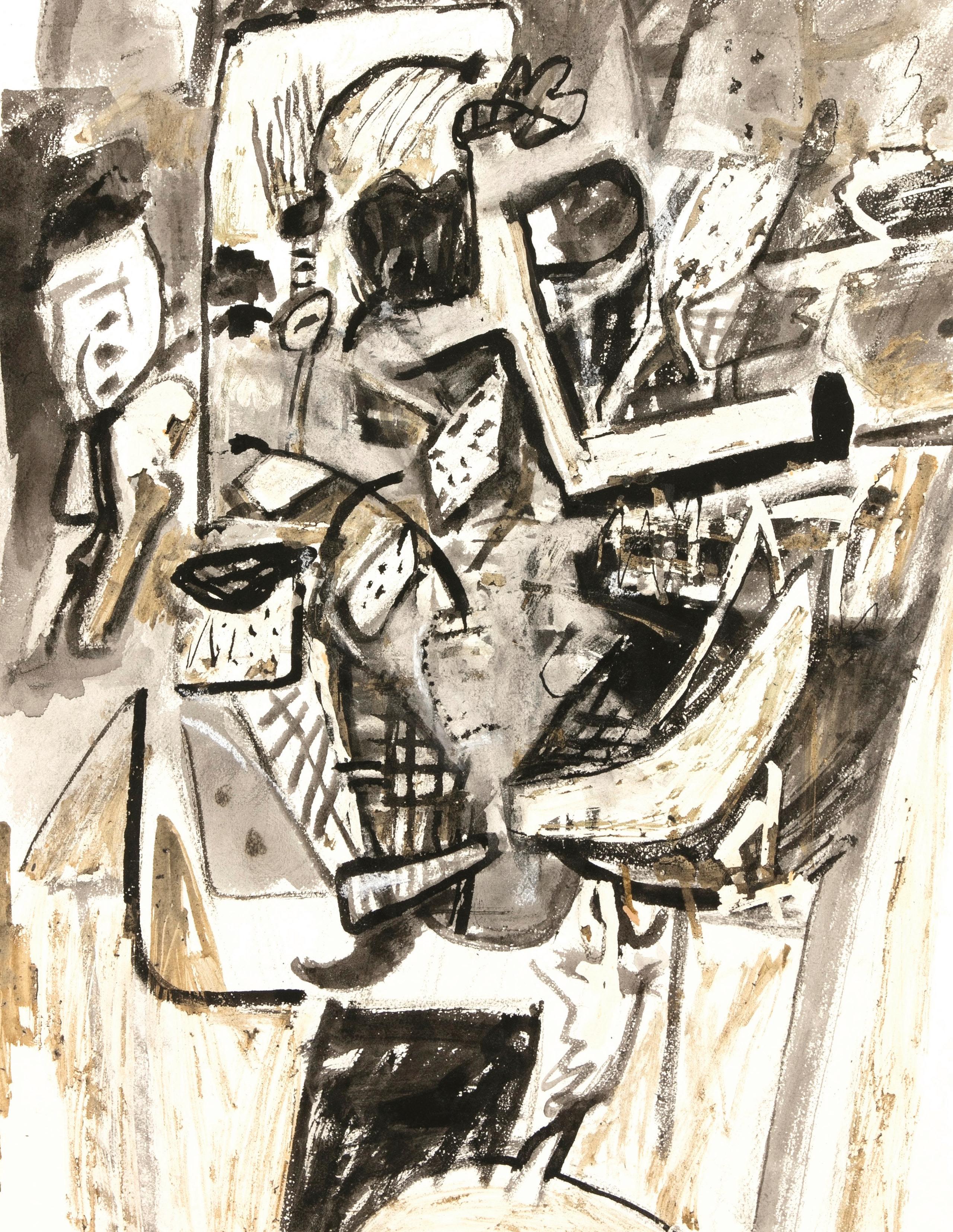 Later that year, Natalie was killed in an automobile accident. Burlin was devastated. He moved back to the Southwest, but found no solace there, and soon returned to Europe. He continued to live in Paris until 1932, when he moved back to the United States in the midst of the Great Depression to work for the WPA. During this time, Burlin’s work tended toward social-realism, experimenting with political and urban themes. Throughout the war, Burlin employed themes of war and persecution, drawing much of his inspiration from Picasso’s war paintings.