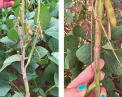Cancro del tallo por Diaporthe, favorecido por lluvias abundantes al inicio del cultivo.