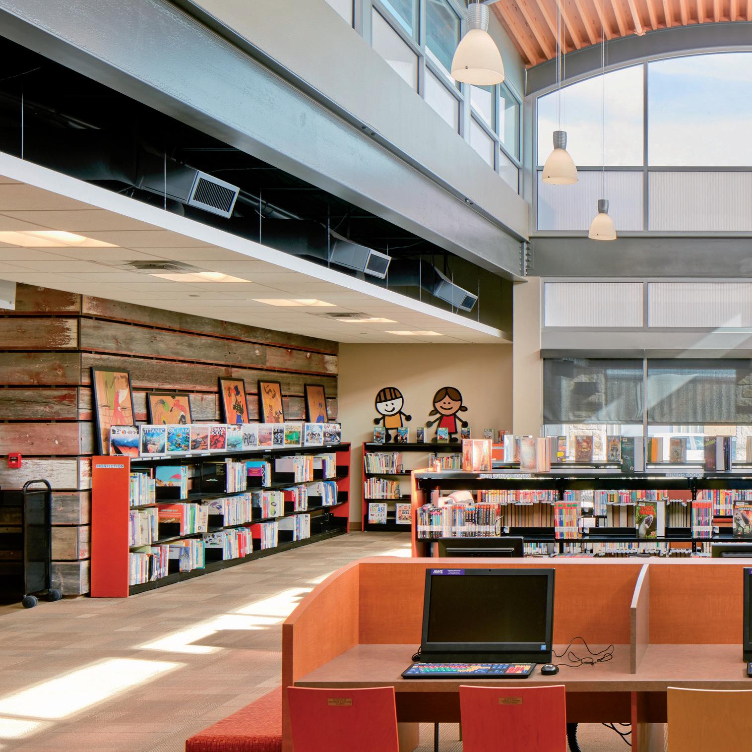 The multi-phase project introduced flexible, programfocused spaces that support creativity and engagement across age groups. Highlights include a naturally lit, 200-person program room, a dynamic teen area, and a colorful children’s zone with reading nooks, play areas,