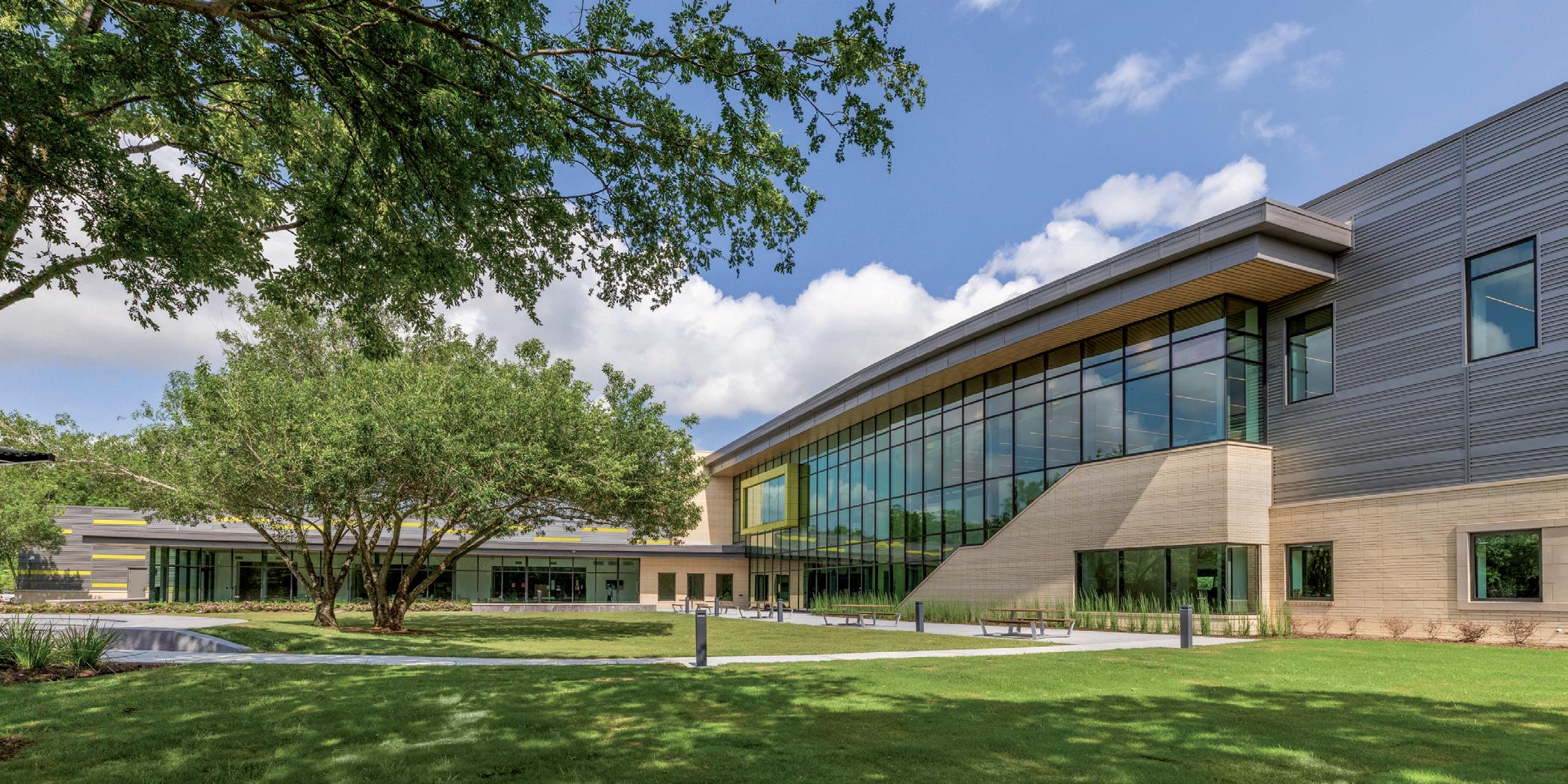 Located in Grogan’s Mill, the new Montgomery County Library is designed to revitalize the area’s first-established neighborhood, honoring The Woodlands’ commitment to preserving natural surroundings through biophilic design.