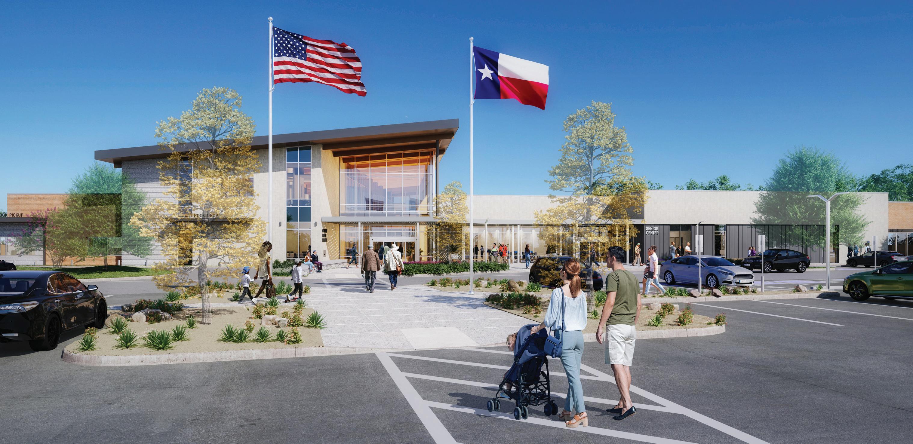 Prominently located in a mixed-use development, the 11,000-square-foot Lake Travis Community Library overlooks a retention pond and is visible from all sides, serving the four communities of the Lake Travis Library District. The design reflects a Tuscan/Hill Country aesthetic, aligning with the developer’s vision while creating a welcoming civic presence.