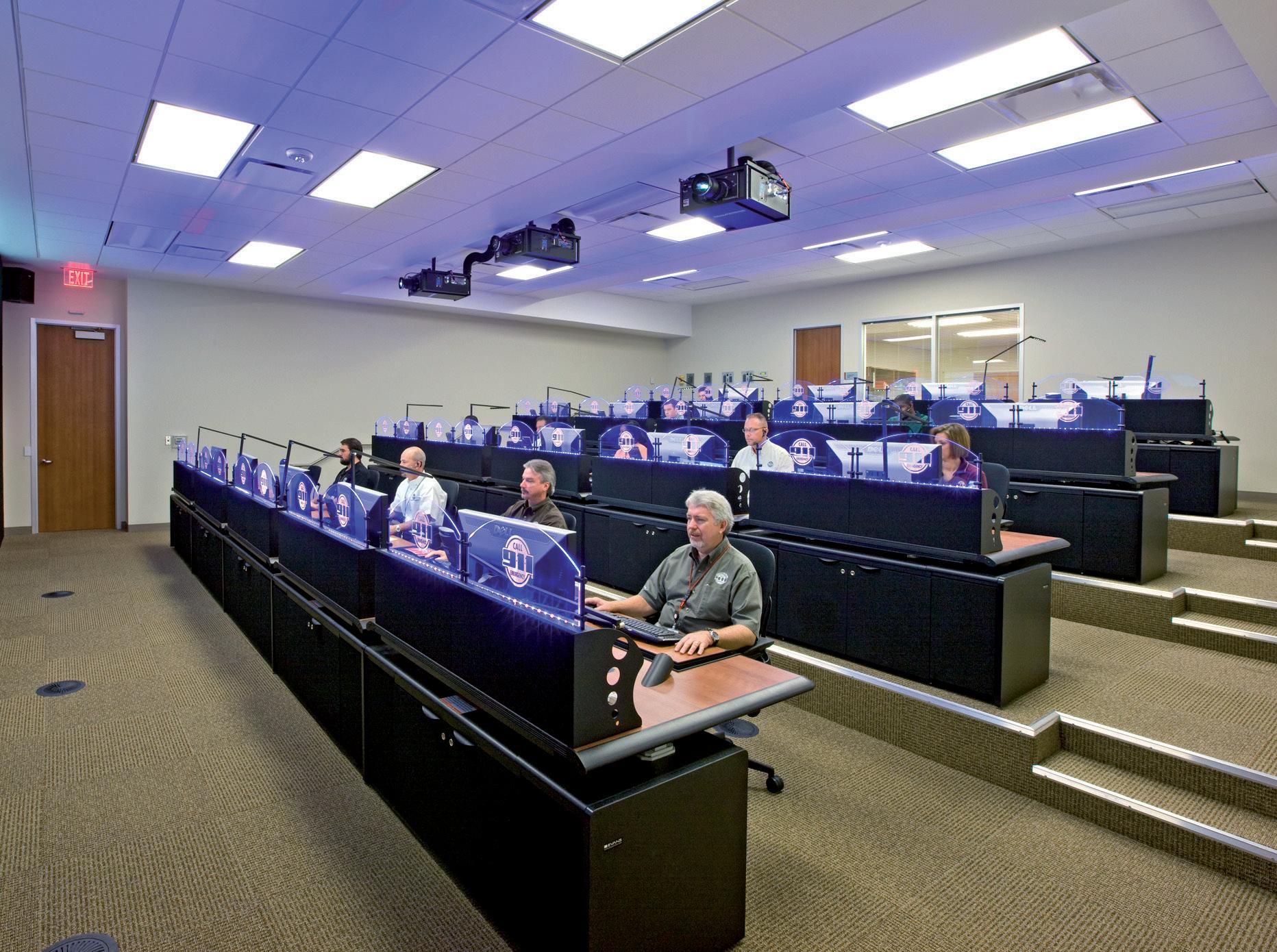 The 9-1-1 dispatch center consists of an approximately 1,500-square-foot call center, accommodating a total of 20 call stations. Quad-image projectors and six wall mounted video monitors tied to the audiovisual system allow dispatchers to view any number of images, including traffic cameras, local and cable television stations, local weather, and call information. The dispatch center is also adjacent to the city’s emergency operations center, allowing the two areas to share resources.