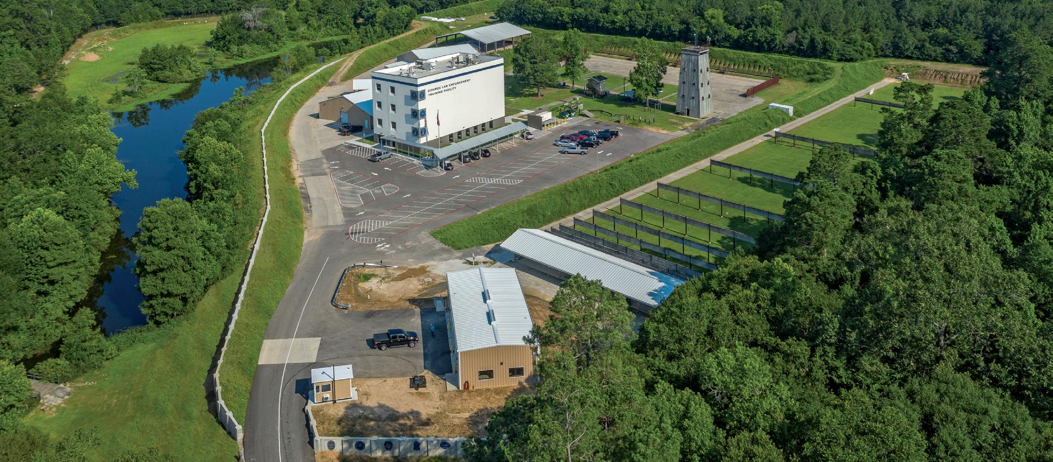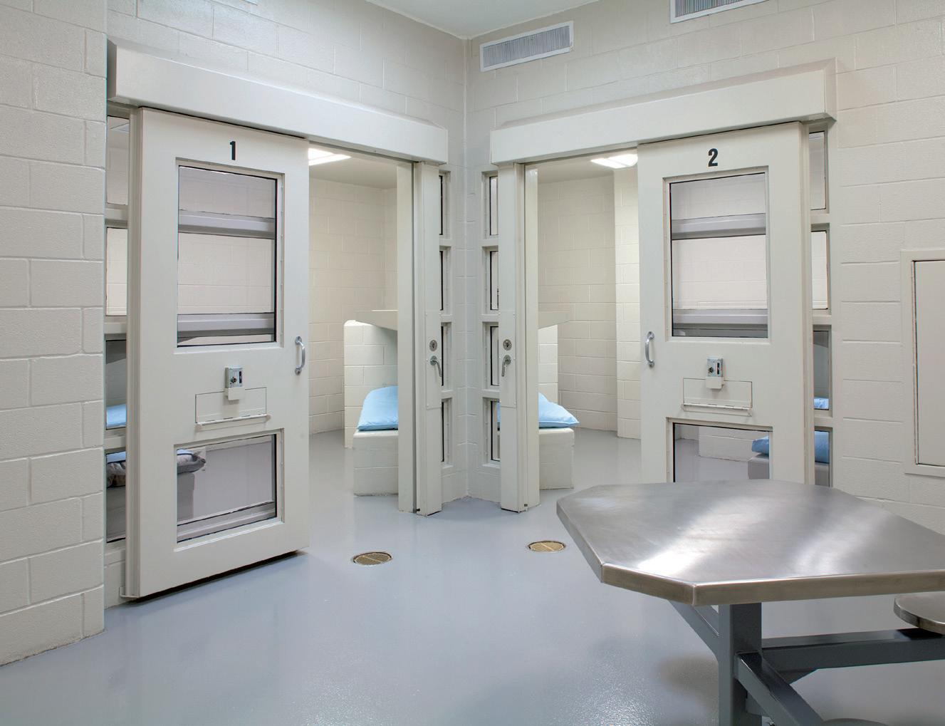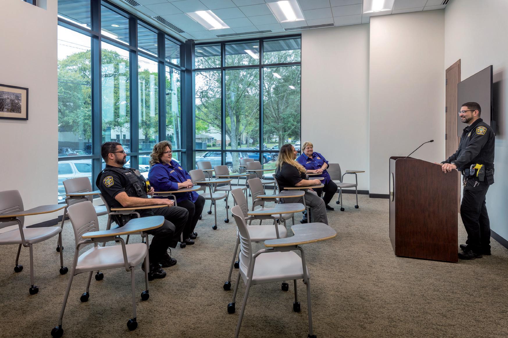 The state-of-the-art facility includes an expanded jail with eight holding cells and juvenile detention space, a twovehicle sally port, interview rooms, detox unit, evidence storage, crime lab, armory, secure server room, property and records rooms, and a fitness center with male and