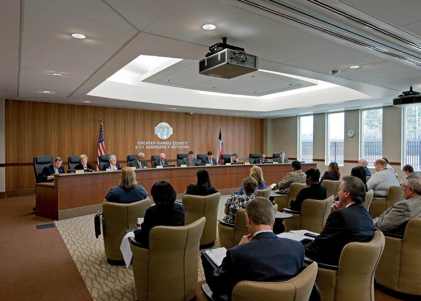 The emergency operations center is located on the ground floor with a special feature- single use workspaces along its north wall to accommodate additional staff during heightened emergencies and is adjacent to the 9-1-1 communications room.