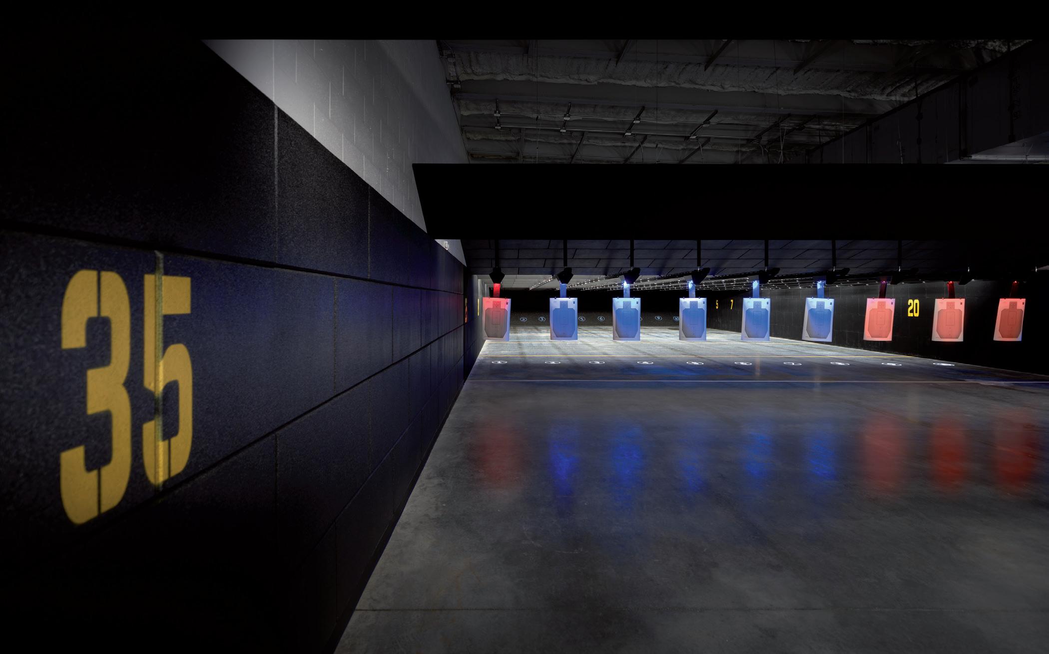 The static and tactical range is 50 yards of total distance which can accommodate 10 shooters at one time. The design serves critical objectives unique to this specialized facility, including ballistic protection, sound mitigation