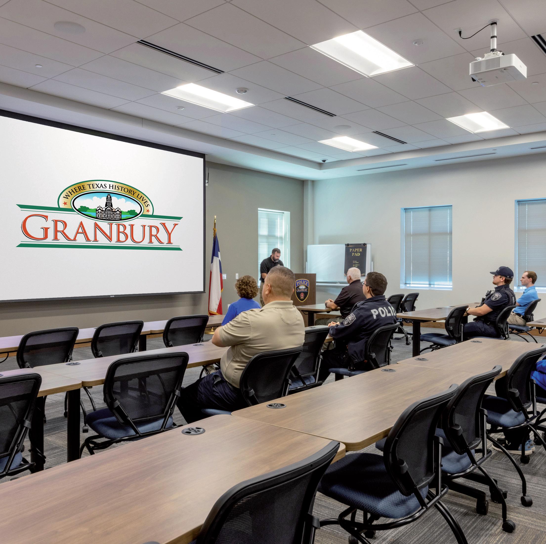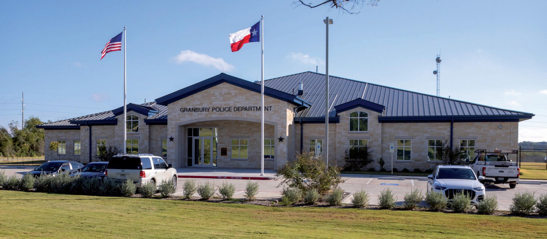 This one-story, 26,000-square-foot police headquarters is conveniently located near Granbury City Hall and designed to serve the city through 2038. The exterior design of the building is contextual to the near by City Hall while maintaining a sense of authority.