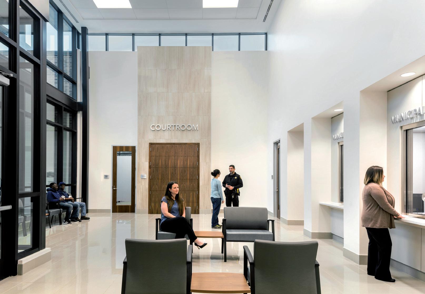 Also included in the complex is a 33,400-square-foot municipal courts building, a 10,000-square-foot central plant that serves the entire campus, and a 5,000-squarefoot forensics facility that features, among other elements, a car-lift for evidence retrieval.