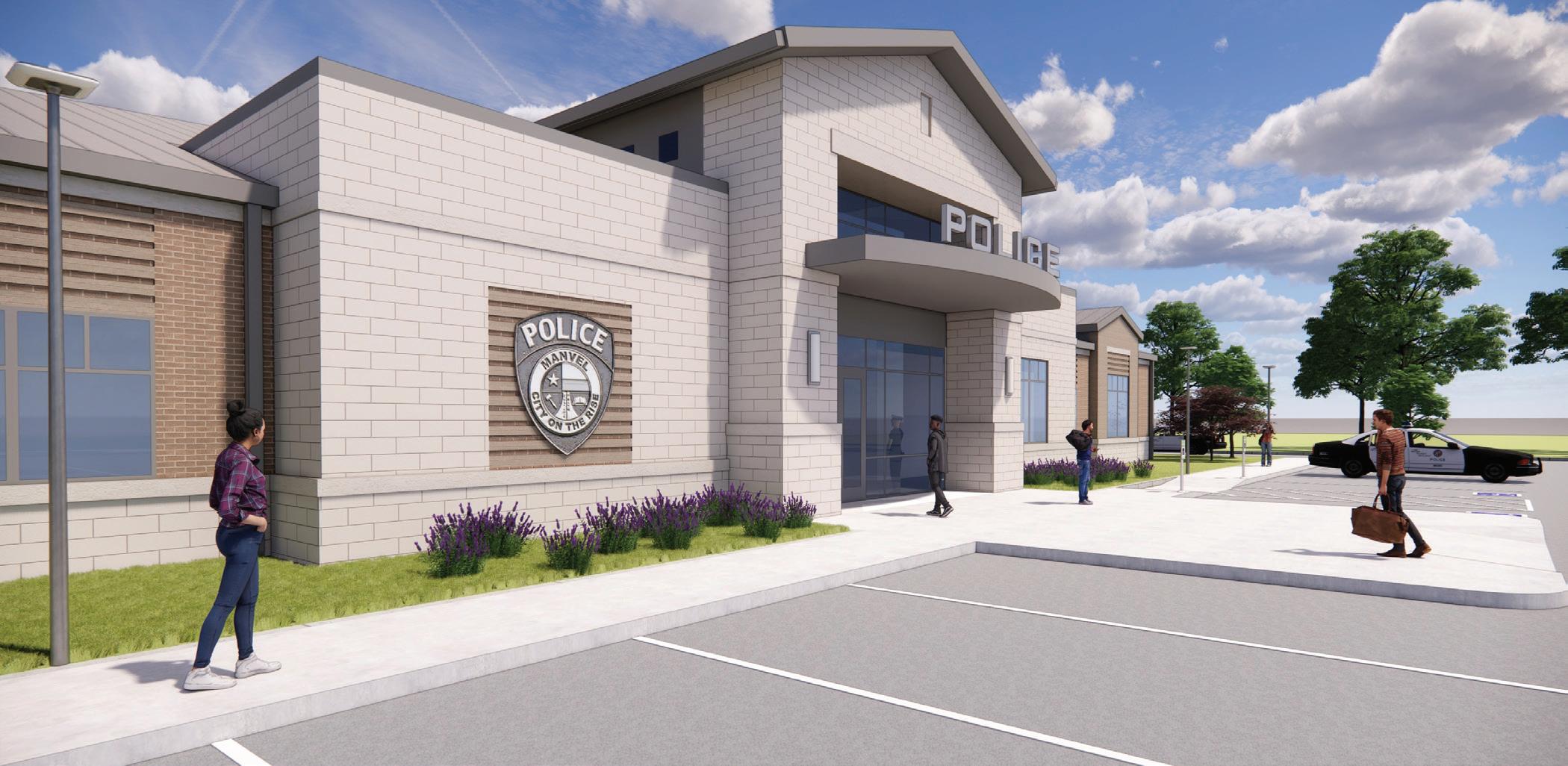 The proposed City of Manvel Police Station is on an 8.64acre site at 6615 Masters Road in Manvel, Texas. The project consists of the construction of an approximate 45,000-square-foot police station building containing various police departments, an emergency operations center (EOC), a community room, evidence processing and storage areas, a jail with 10 holding cells and 4-car vehicular sallyport, various building support areas, and a standalone 1,250-square-foot animal shelter located near the rear of the site.