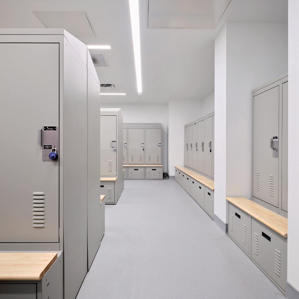 female locker rooms. The building also includes a squad room, offices and administrative space, and training and conference rooms.