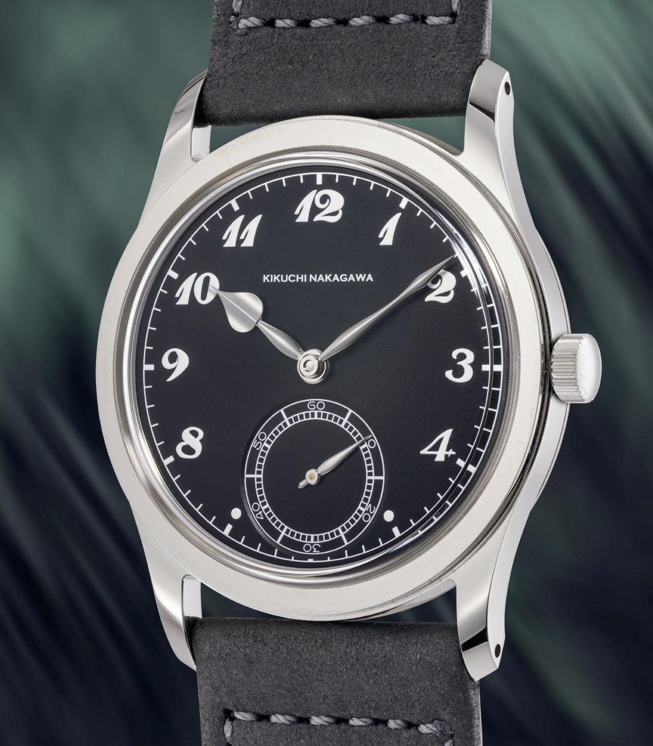 Following the success of Ōtsuka Lōtec’s Phillips debut in last year’s TOKI auction, we are thrilled to present the first “No. 5 Kai” at auction. The Ōtsuka Lōtec No. 5 Kai is Katayama’s latest creation, and it stands apart from nearly every perspective. Viewed head-on, it features a wandering hours display; from the side, it reveals an ultra-thin stainless-steel case topped with a dramatically thick box-style sapphire crystal. True to Ōtsuka Lōtec’s aesthetic, the finishing combines visible brushing, media-blasting, and a muted, low-contrast palette punctuated by sharp angles and protruding forms. The crown at 4 o’clock perfectly exemplifies this brutal industrial design: the caseband is recessed to make space for the pronounced crown tube, which flares into a large, aggressively knurled knob.