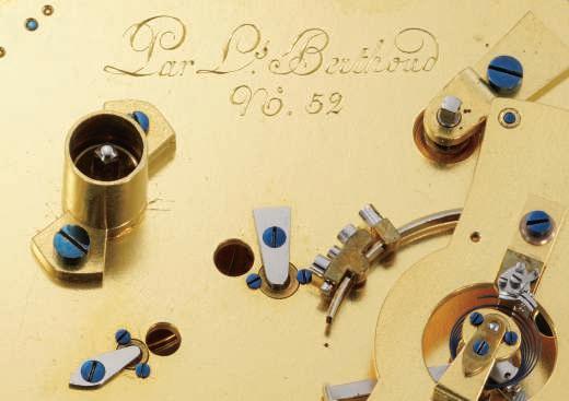 Berthoud like many of his peers had been testing the lever escapement but met challenges regulating the movements and more often than not replaced the lever escapement by a pivoted detent escapement. N° 52 seems to have been an exception as from the start Berthout was very happy with its lever escapement writing in his notebook “This watch with a lever escapement, was sold in Floréal of the year IX in order to be given by the First Consul to Vice-Admirai Décrès. I considered it as one of my best watches, and since the month of Brumaire year X (November 1804) when it was returned to me for examination, have often been astonished by its regularity”.