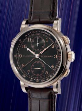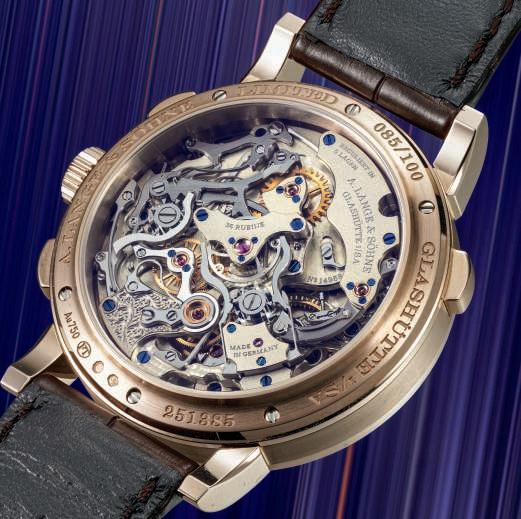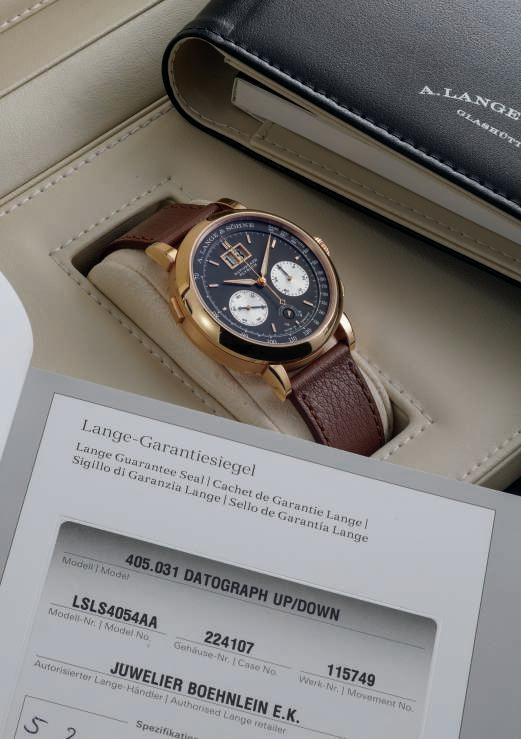A. LANGE & SÖHNE — A fine and attractive pink gold flyback chronograph wristwatch with oversized date display, power reserve indication, guarantee and presentation box