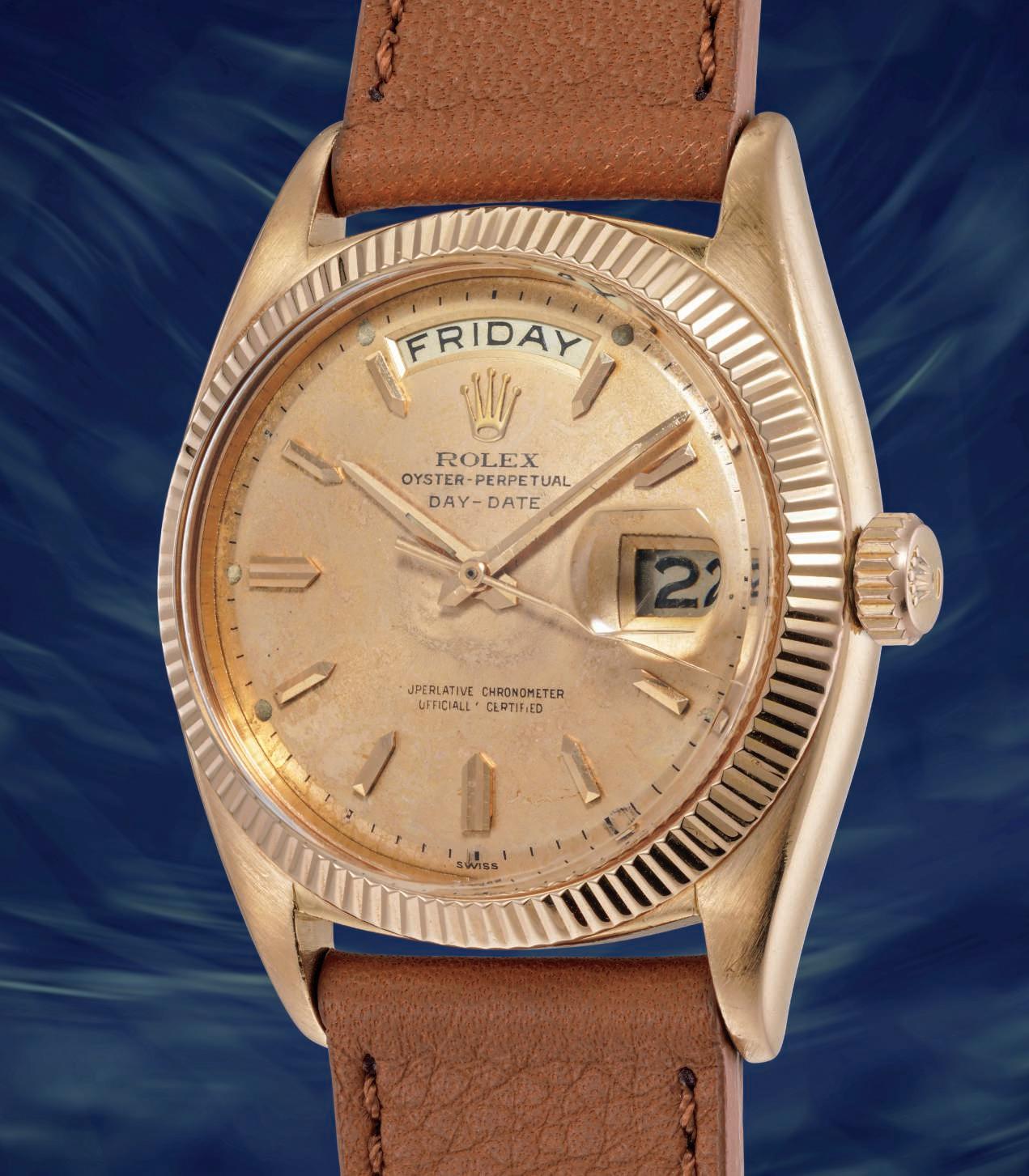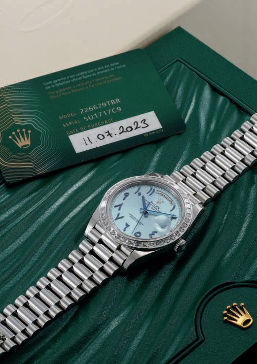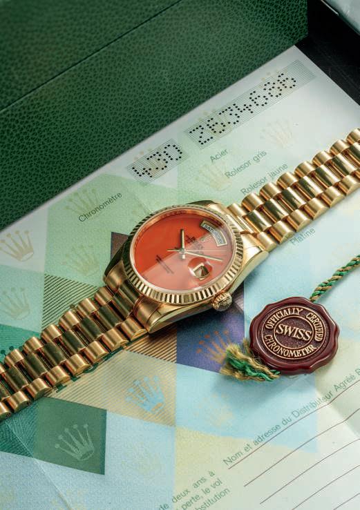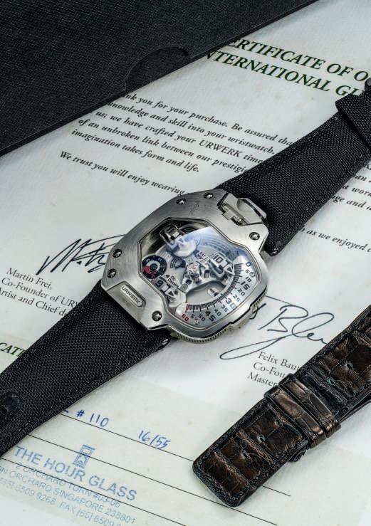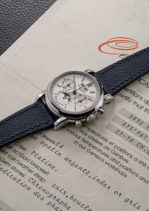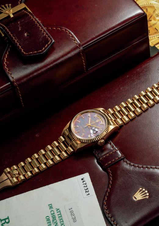 Some of the watches offered for sale in the catalogue may have bands made of endangered or protected animal materials, such as alligator or crocodile, and may not lawfully be exported from the auction site without a CITES export permit. As explained in Paragraph 4 of the Guide for Prospective Buyers, these lots are marked with - in the catalogue. Accordingly, for purchased watches that are to be shipped out of the sale site for delivery, Phillips may need to remove and retain the band before shipping the watch and buckle.