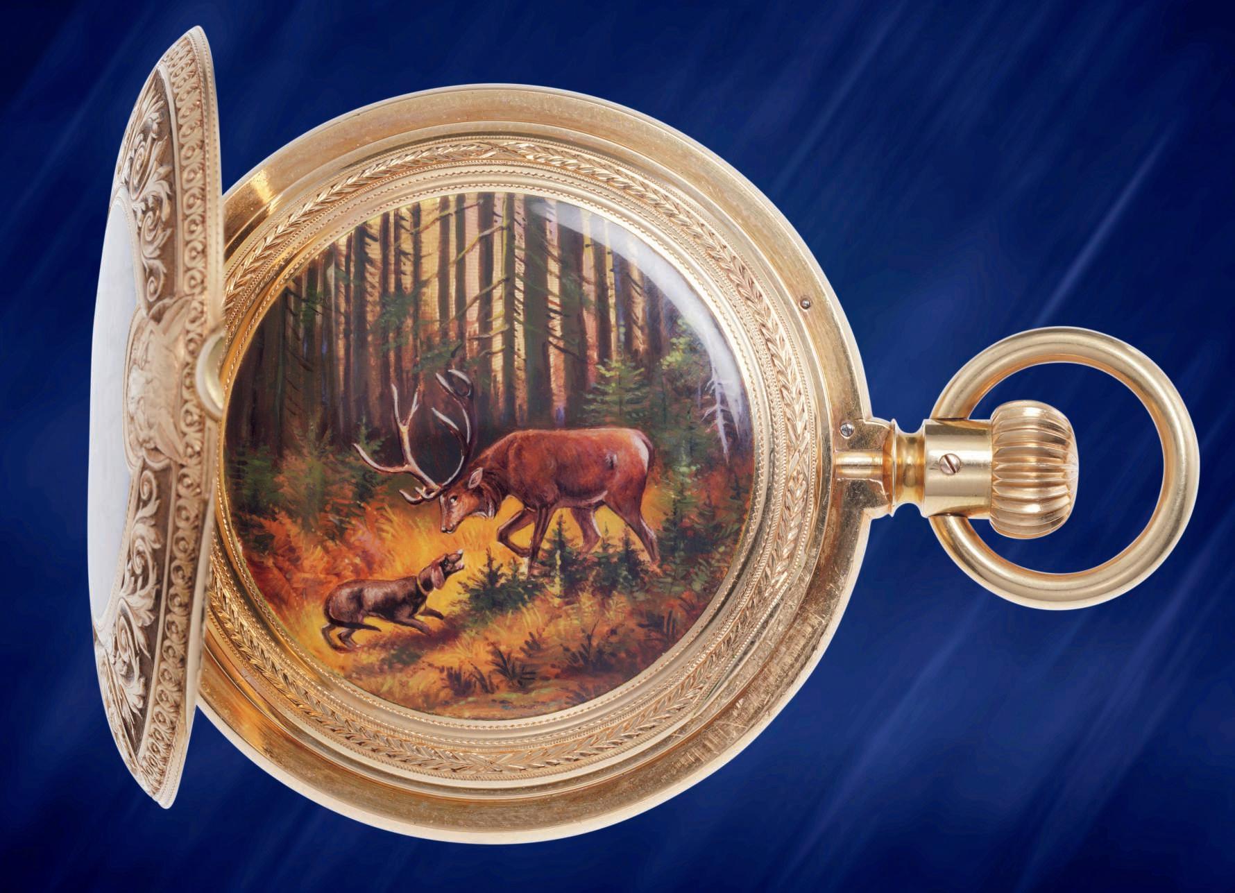 A. LANGE & SÖHNE — An exceptional and lavish yellow gold and enamel hunter cased watch with jump seconds
