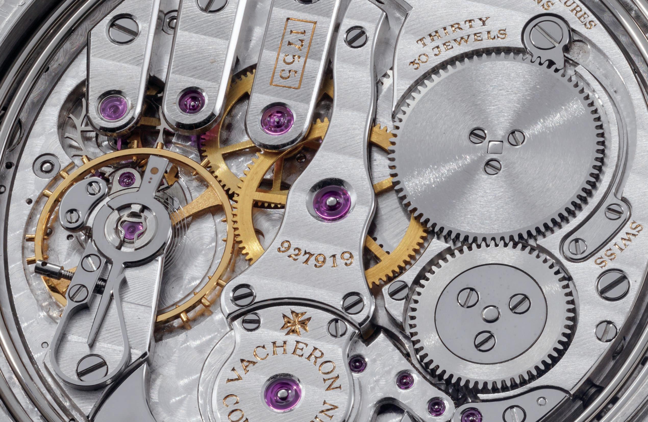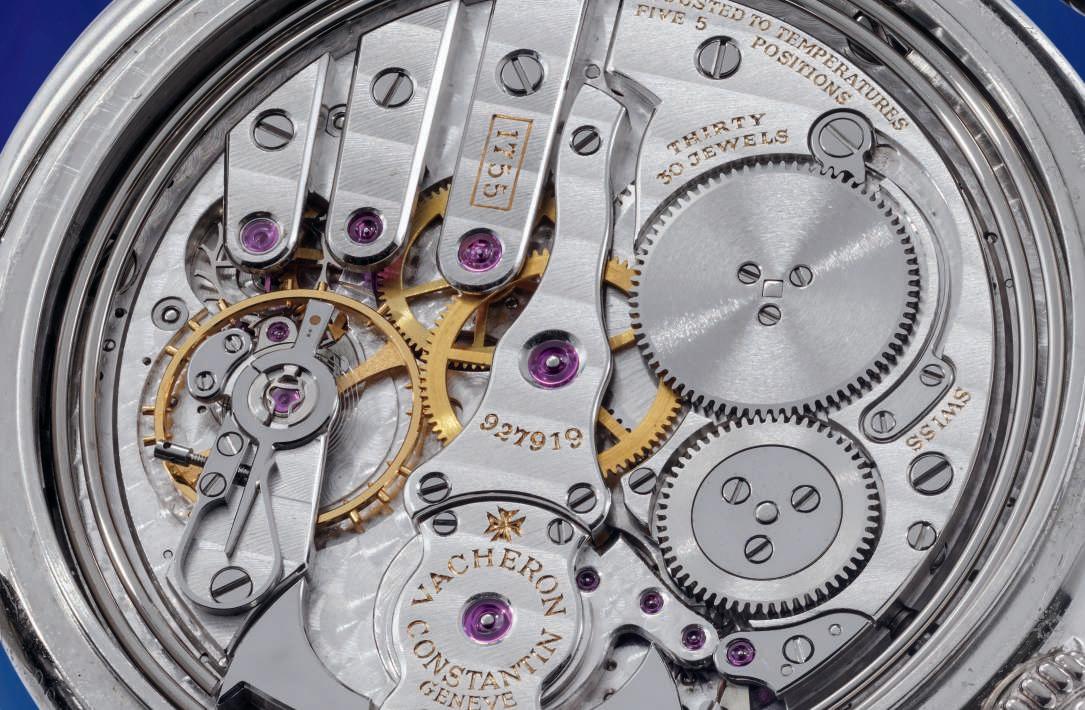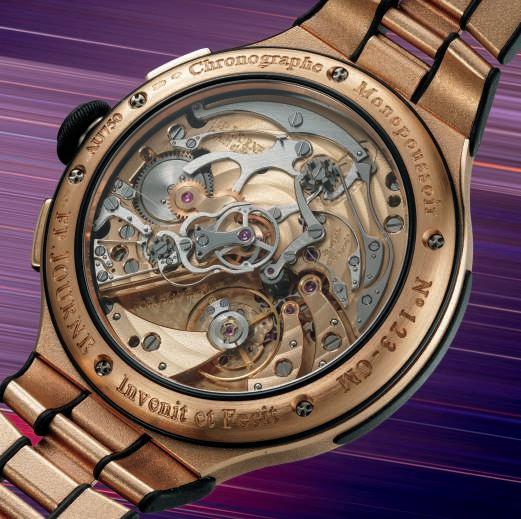 The watch also features a bimetallic Guillaume-type thermocompensated split balance made of Invar and brass material. It is equipped with four gold adjustment screws (for regulating the rate), two nickel silver adjustment weights on the split rim (for regulating thermal compensation) and two fixed weights ensuring the inertia of the balance.