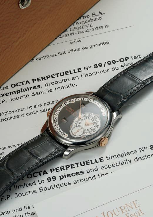 F.P. JOURNE — A coveted and extraordinary titanium and pink gold automatic perpetual calendar wristwatch with retrograde date, ruthenium dial, certificate and presentation box, number 89 of a limited edition of 99 pieces, made exclusively for the 5th anniversary of the F. P. Journe Boutique Tokyo