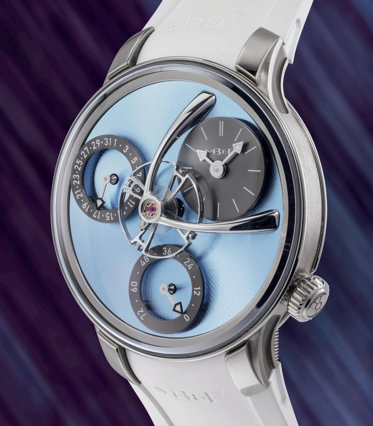 In 2011, MB&F introduced the now-iconic Legacy Machine collection—a bold shift from the brand’s futuristic Horological Machines. Inspired by the charm of 19th-century pocket watches, the first model, LM1, featured MB&F’s first round case, a dramatically domed sapphire crystal, dual time zones, and the signature flying balance wheel suspended by twin arches— blending tradition with innovation.