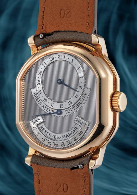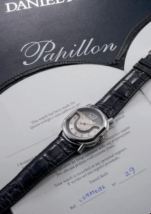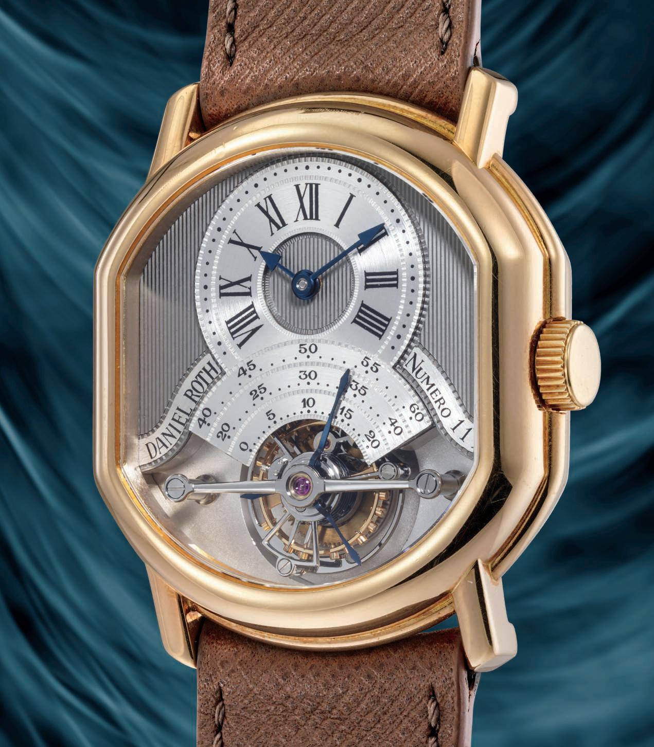 Considered to be one of the most remarkable contemporary watchmakers, Daniel Roth trained in his early career with high-end brands like Audemars Piguet and played a crucial role in the revival of Breguet. Offering his creative take on traditional Breguetinspired watches, of which this piece is an enduring testament, he designed his double-faced Tourbillon, reference C187, in 1988 and released it the following year as a way to announce his independence and the creation of his eponymous brand.