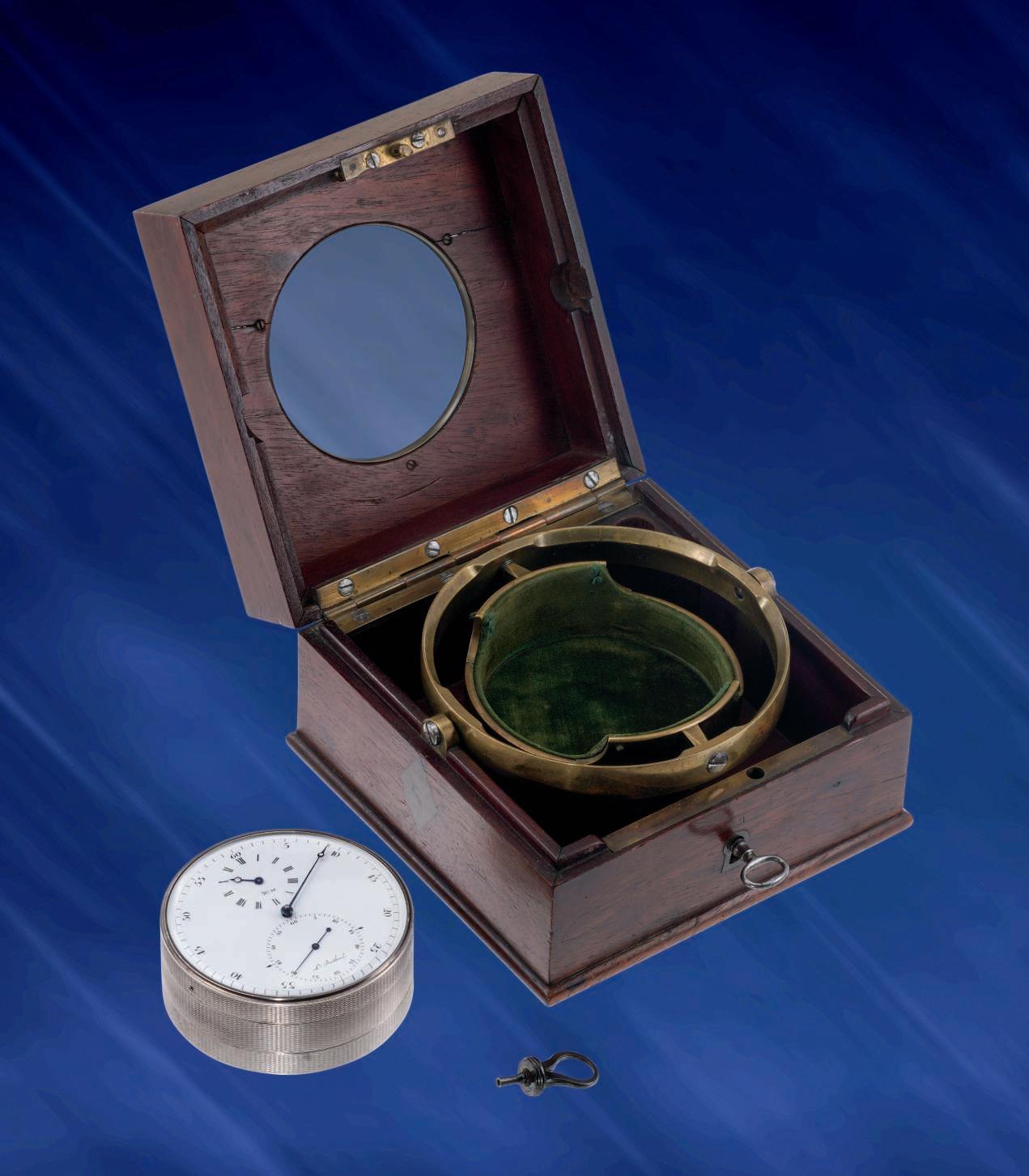 LOUIS BERTHOUD — An incredibly rare and historically important Napoleonian silver cased marine chronometer with lever escapement and conical balance spring