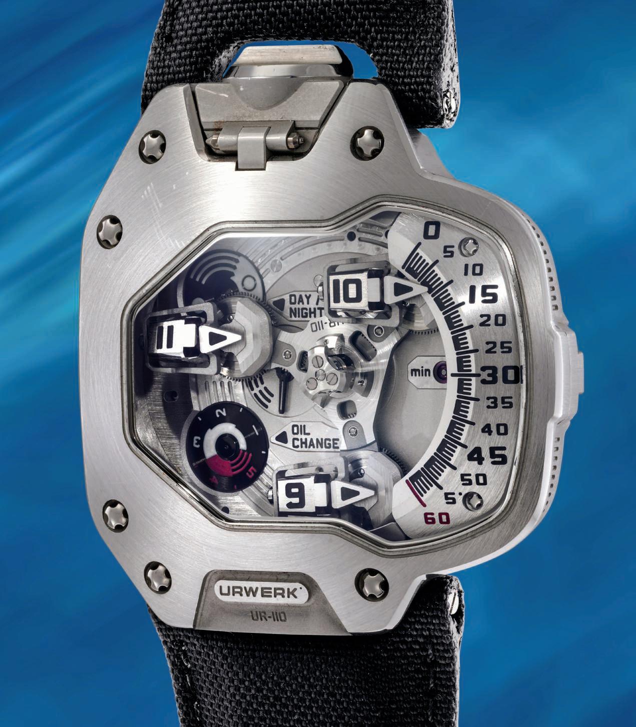 MB&F — A striking and technically impressive titanium wristwatch with suspended balance, date, and power reserve indicator, accompanied by guarantee and presentation box