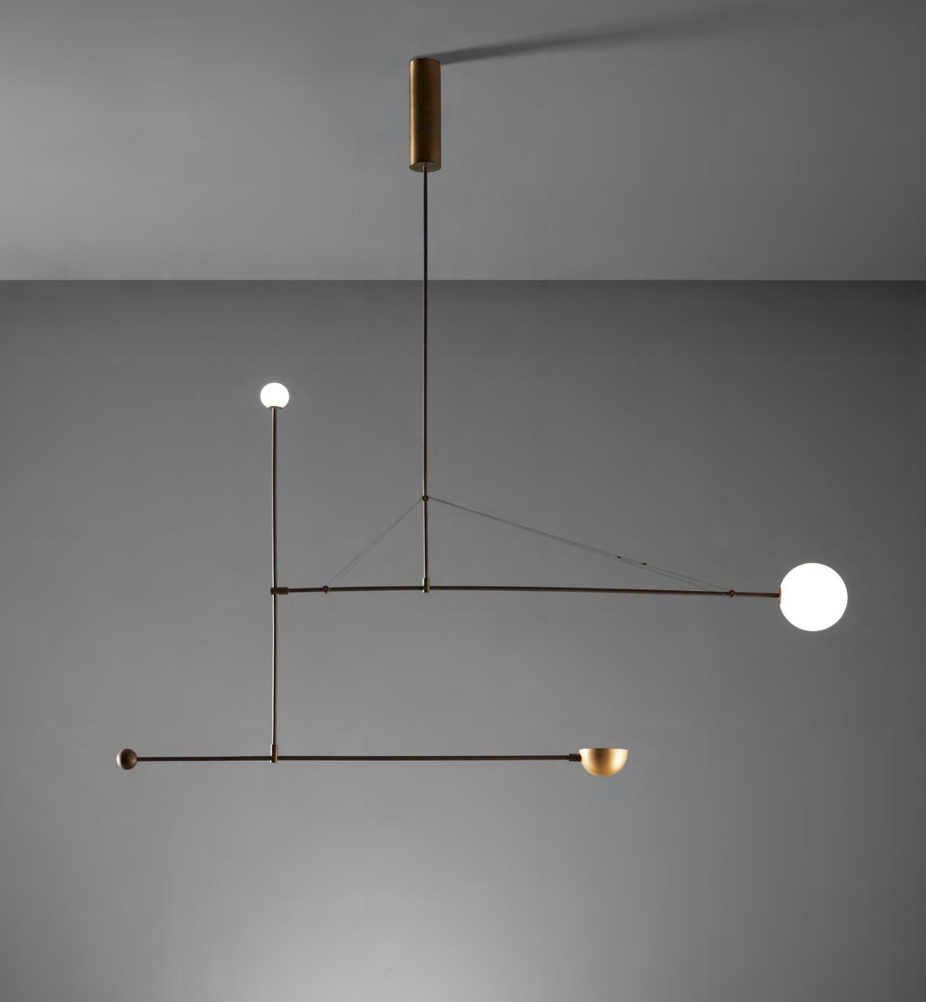 Three “3 Lune” ceiling lights circa 1961 Brass, glass.