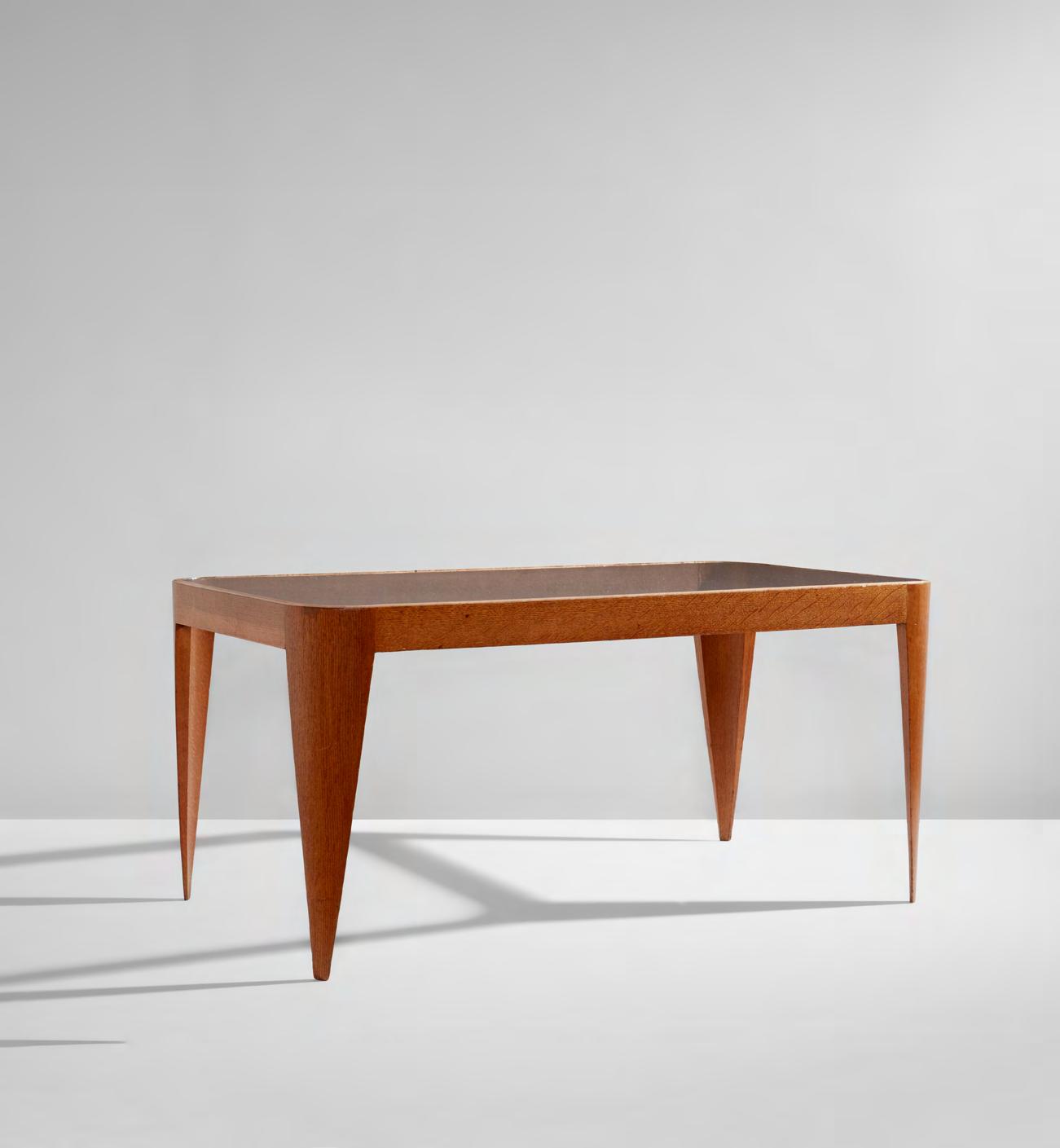Walnut, walnut-veneered wood, glass. 29 x 47 1/8 x 27 1/2 in. (73.7 x 119.7 x 69.9 cm) Manufactured by Luigi Fontana & C., Milan, Italy. Underside of glass top twice ink stamped L. FONTANA & C./1931 Together with a certificate of expertise from the Gio Ponti Archives.
