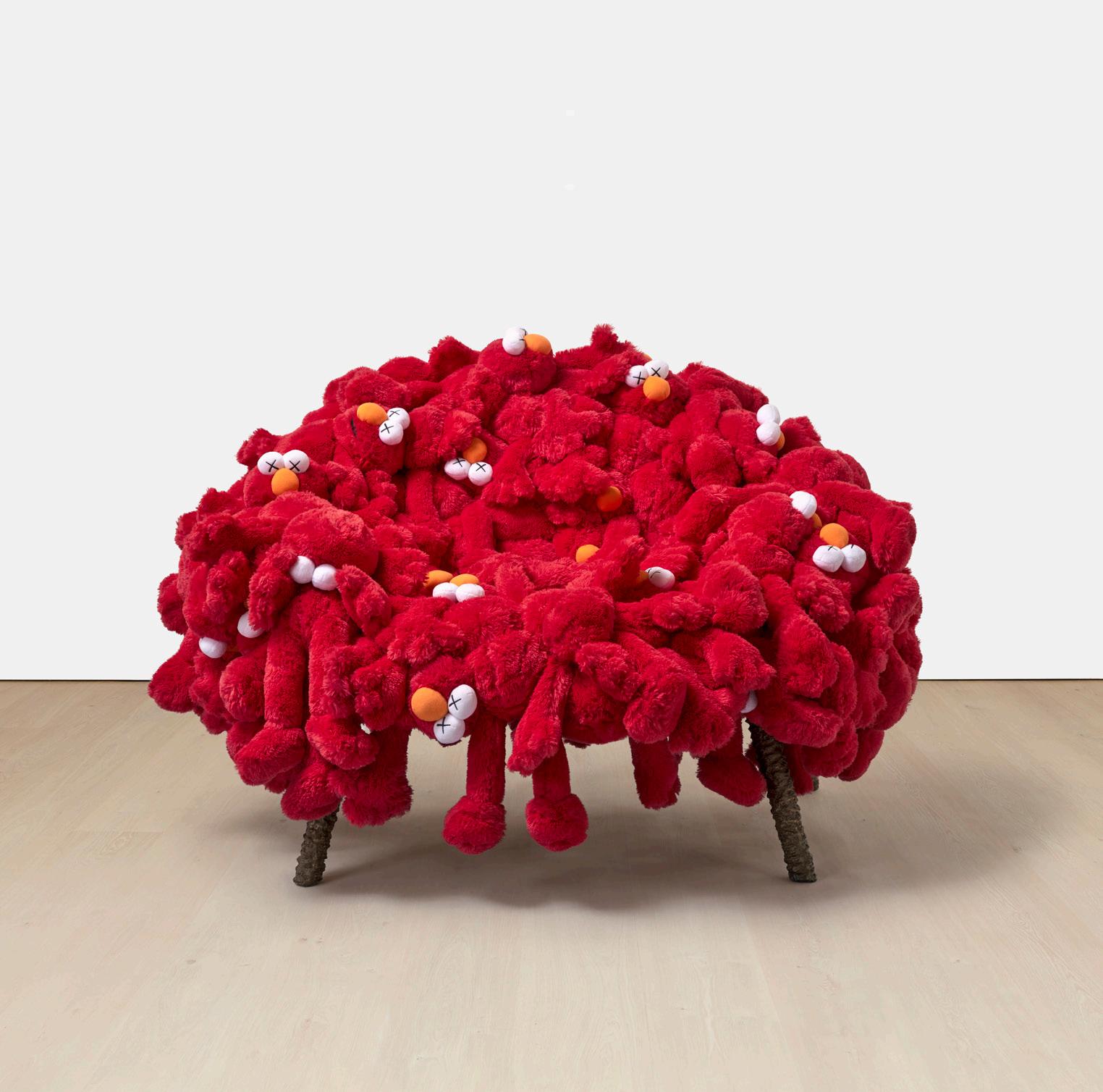《 KAWS:怪物椅子》 絨毛玩具 不鏽鋼 銅 2019 年作,共有 25版,此為第9版。