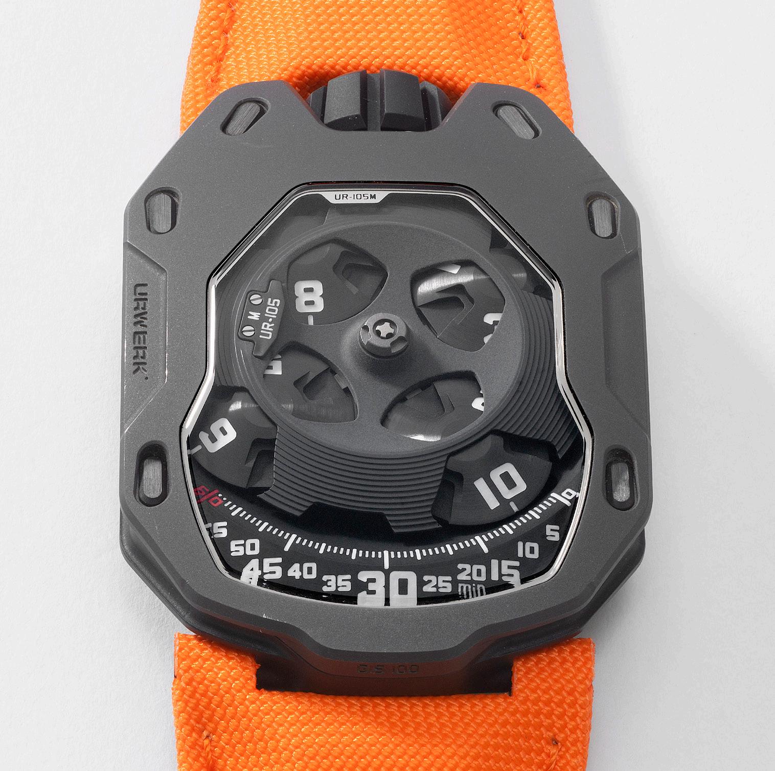 Urwerk,「Dark Knight」型號 UR-105M,精細、 罕有及獨特,限量版鈦金腕錶,備立體衛星時間顯示、 動力儲備顯示,限量發行 77 枚,編號第10 號,