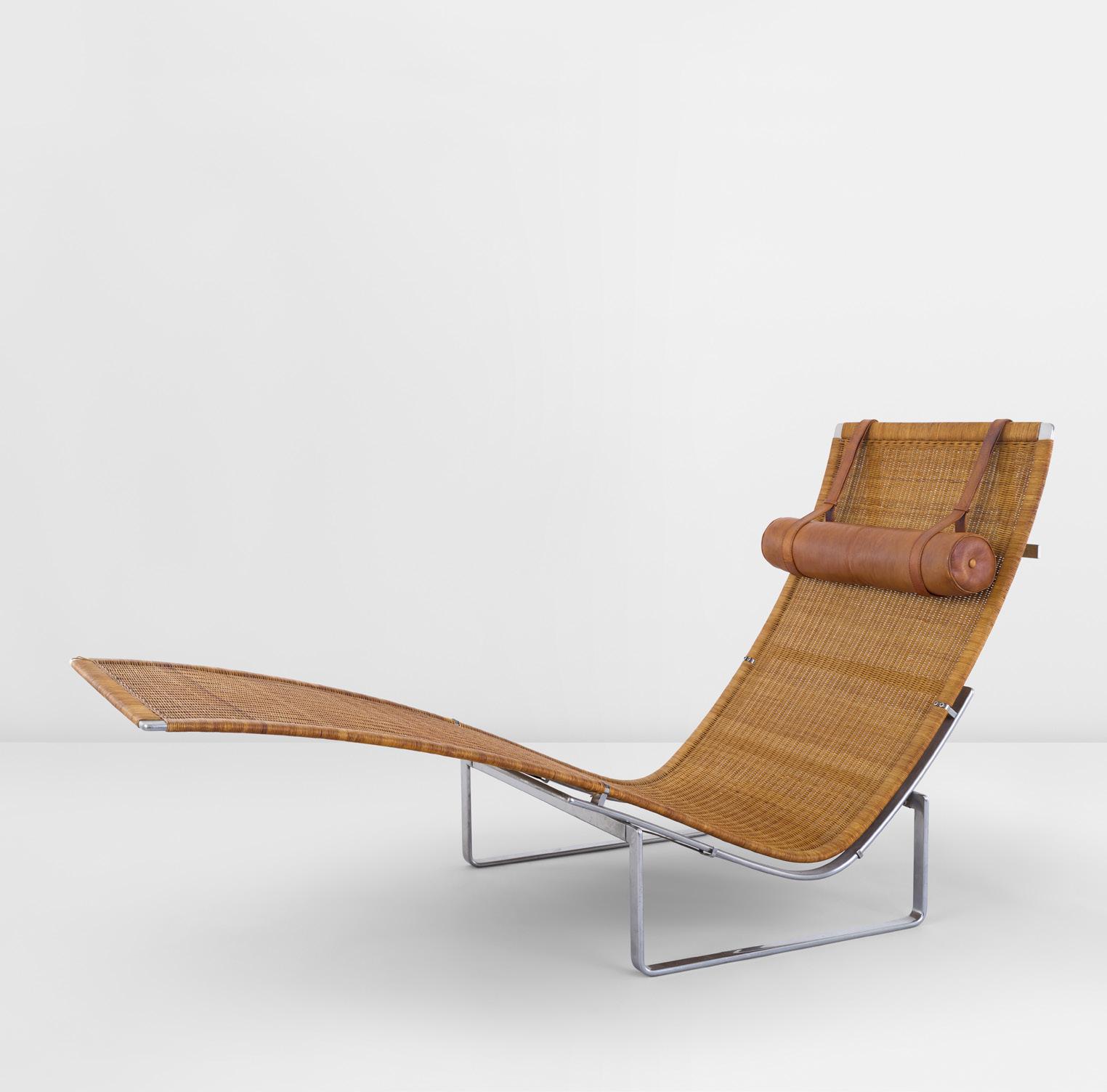 ‘Hammock’ lounge chair, model no. PK 24 cane, stainless steel, leather 86 x 153 x 66.5 cm. (33 7/8 x 60 1/4 x 26 1/8 in.)