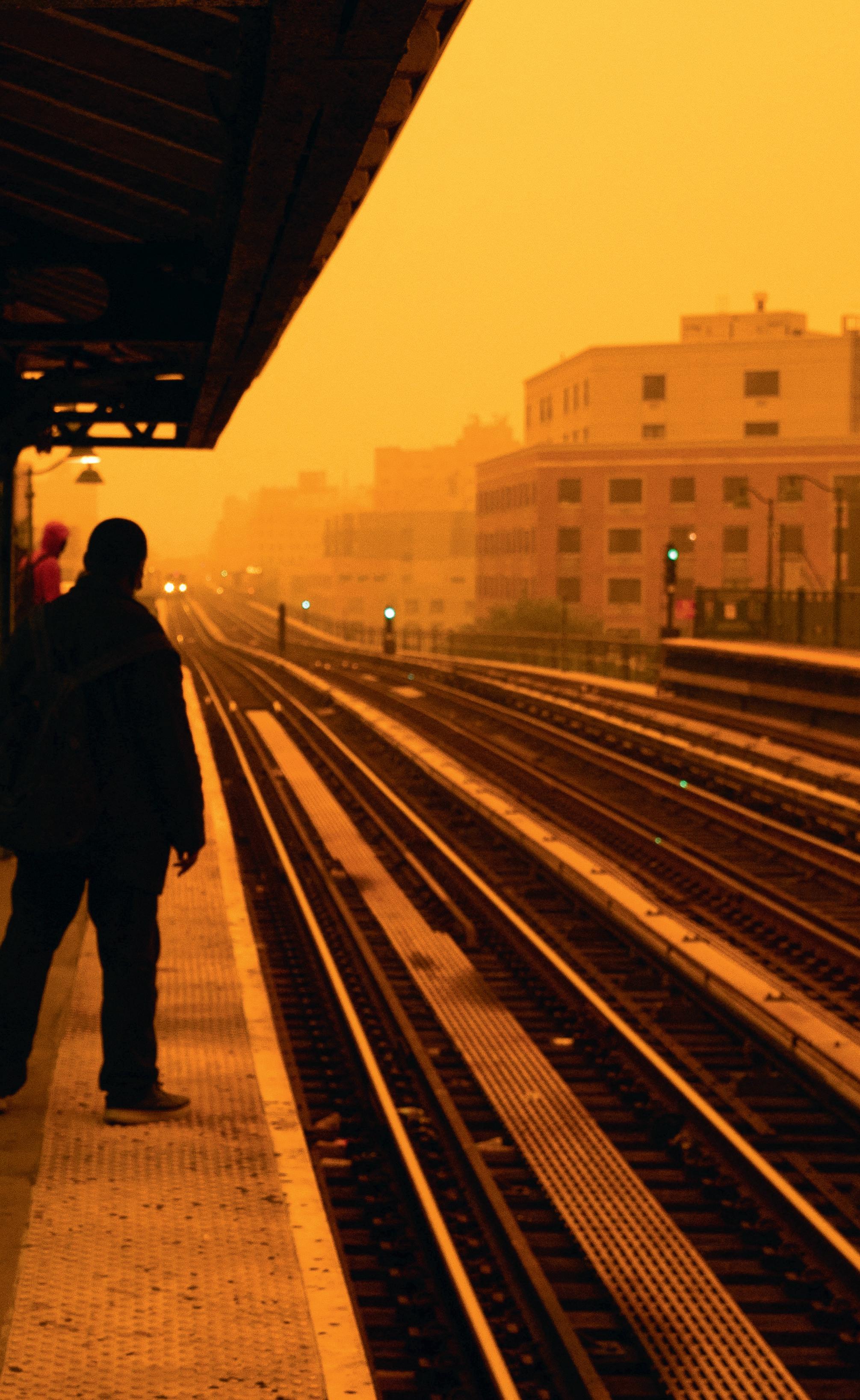 Alors que des feux hors de contrôle ravagent les forêts canadiennes, la fumée des incendies recouvre de sa chape orangée le territoire américain et rend la qualité de l’air dangereuse, comme ici dans le quartier du Bronx.