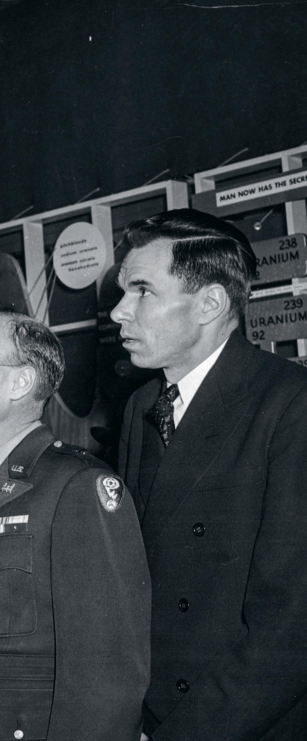 Par Michel EltchaninoffRobert Oppenheimer montrant une photo de l’explosion de la bombe atomique sur Nagasaki, le 9 août 1945, avec (de gauche à droite) le scientifique Henry D. Smyth, le général de division Kenneth D. Nichols et le scientifique Glenn T. Seaborg.