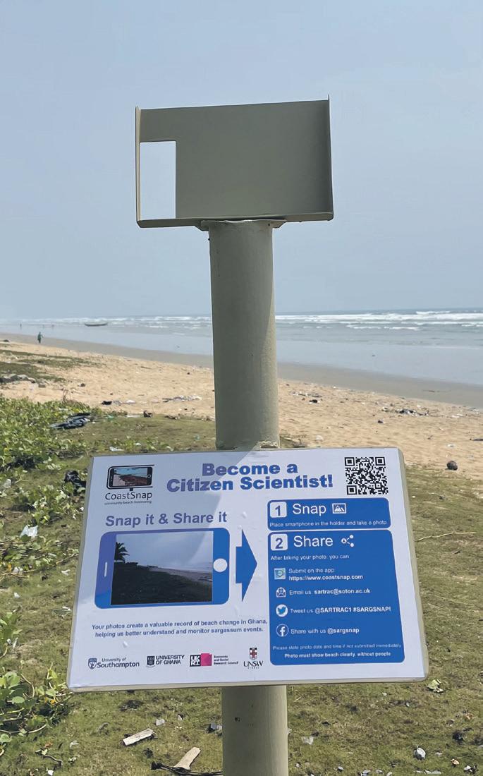 In the mean time, the tracking and monitoring goes on and the SARTRAC team has worked hard to encourage individuals and schools to get involved in vital “citizen science” across the countries affected. In Ghana, for example, where general cloud cover makes satellite tracking of the weed rafts difficult, they have set up photo-points at set locations along the beaches allowing anyone to place their smart phone on the set point photo-post and take a picture of that stretch of beach and send it straight into the regional monitoring group, something which Professor Emma Tomkins believes is vital. She said: