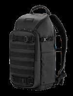 Dinamico, elegante e funzionale • Innovativo sistema di accesso al vano principale: dall’alto, , oppure laterale: a destra e a sinistra, attraverso due grandi aperture • Vano posteriore dedicato al trasporto del pc (16”) • Spallacci imbottiti e sistema di traspirazione per la schiena • Divisori interni in velcro regolabili, tasca frontale con vano riservato all’alloggiamento del Bleutooth Tracker Pocket • Cinghie frontali e laterali per il serraggio del treppiede • Copertura anti-pioggia e riflettente dai raggi solari • Colore black o MultiCamBlack • Dimensioni interne (mm) 290x460x220
