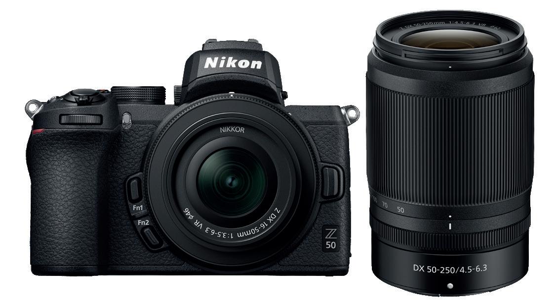 Z50 + Z DX 16-50 + 50-250 VR Incredibilmente compatta con l’obiettivo 16-50 ed estremamente completa nel doppio kit che aggiunge lo zoom tele 50-250 • CMOS in formato DX da 20,9MP con elevate prestazioni anche ad elevati valori ISO 100-51.200 (equivalente a ISO 204.800) • Piene prestazioni video con AF veloce e silenzioso per filmati 4K UHD in pieno formato FX 30p, 25p, 24p + Filmati 1920x1080 120p, 100p, 60p, 50p, 30p, 25p, 24p e Slow Motion 30p ×4, 25p ×4, 24p ×5 • 11 fps con AE/AF a 209 punti dalla copertura verticale e orizzontale del 90% • Mirino OLED da 2.360k punti XGA • Monitor LCD touchscreen basculante TFT 3,2" (8cm 1.040k punti) • Connessione Bluetooth e WI-Fi via App Nikon SnapBridge • Prese jack microfono stereo, HDMI tipo D e USB • Intervallometro on-camera per foto o frame per video Time-Lapse 4K • Free Software Nikon NX Studio e NX Tether per controllo e gestione RAW, TIF e JPG e correzioni selettive Control Point.